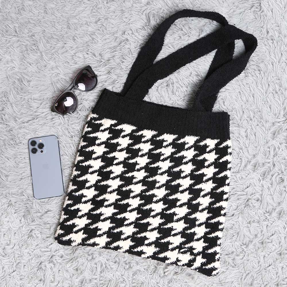 Tweed Fabric Ball Pearl Triple Layered Bib Necklace