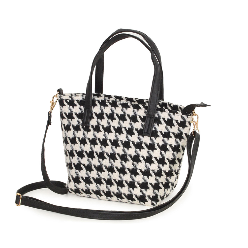 Houndstooth Patterned Tote / Crossbody Bag