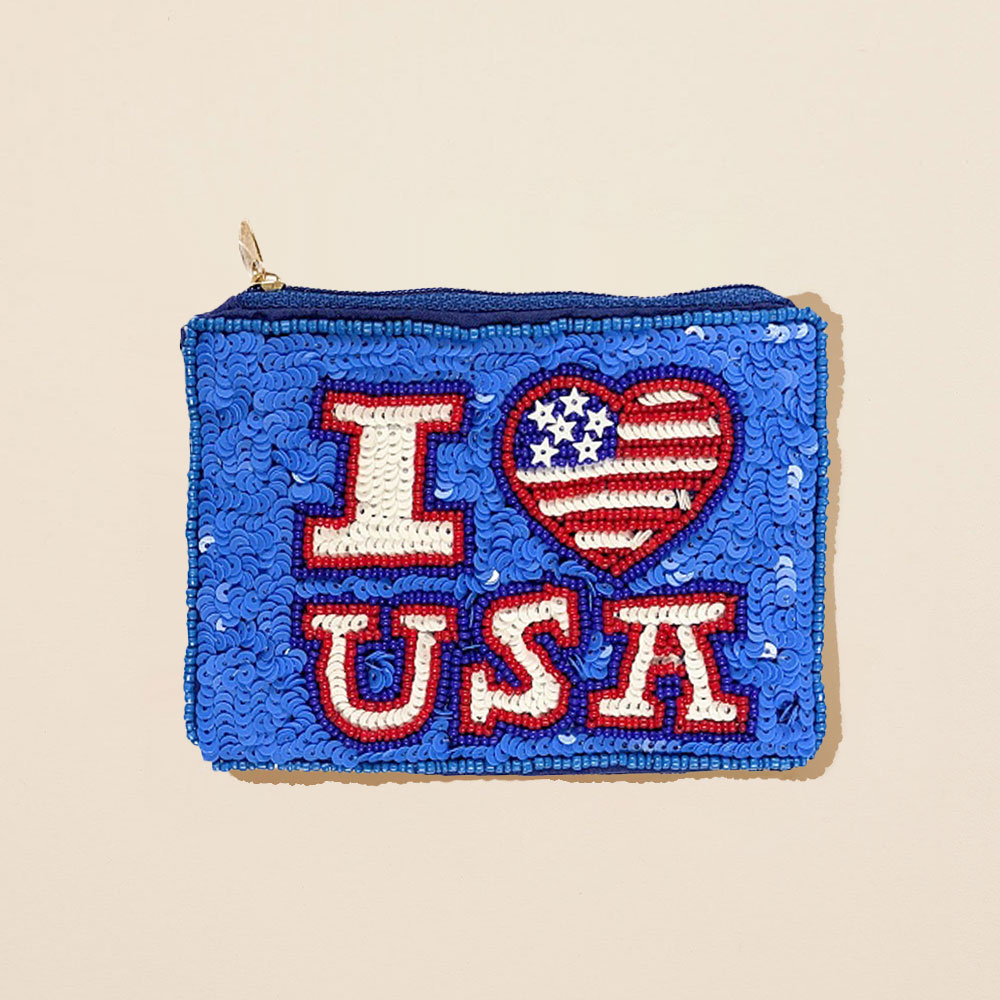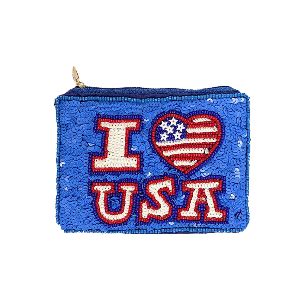 I LOVE USA Message Seed Beaded Mini Pouch Bag