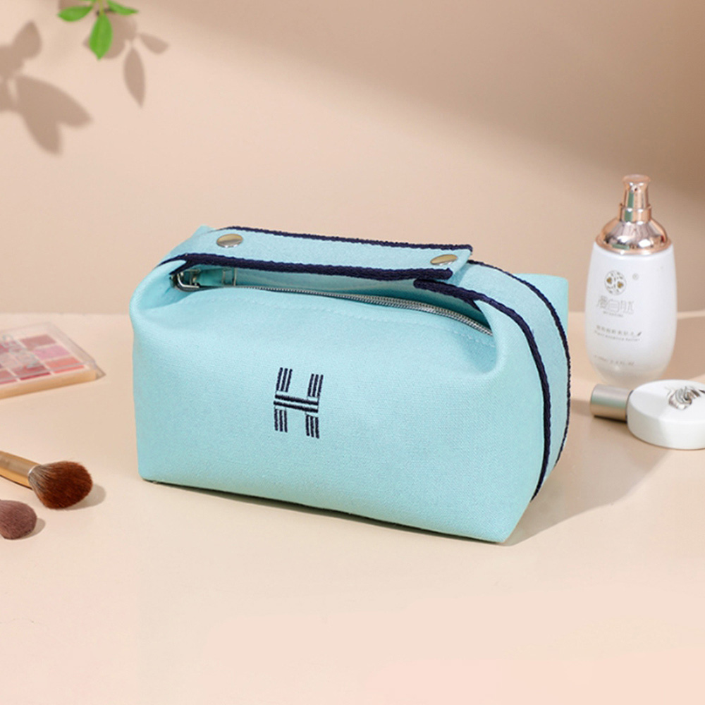 Initial H Pointed Canvas Portable Makeup Pouch Bag