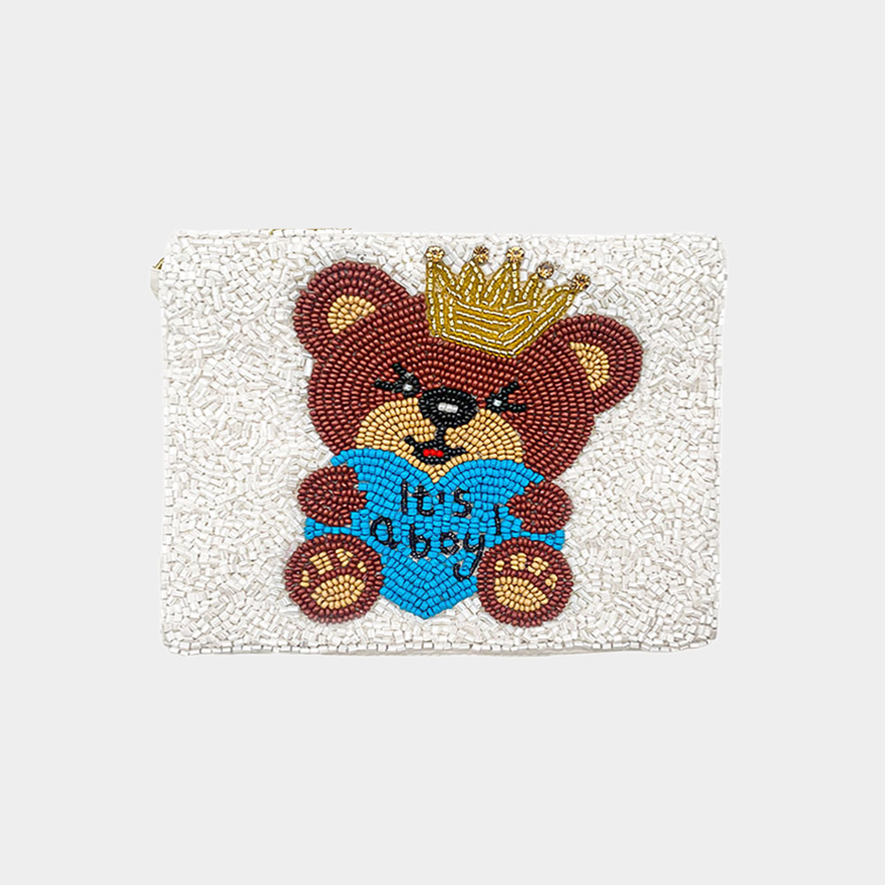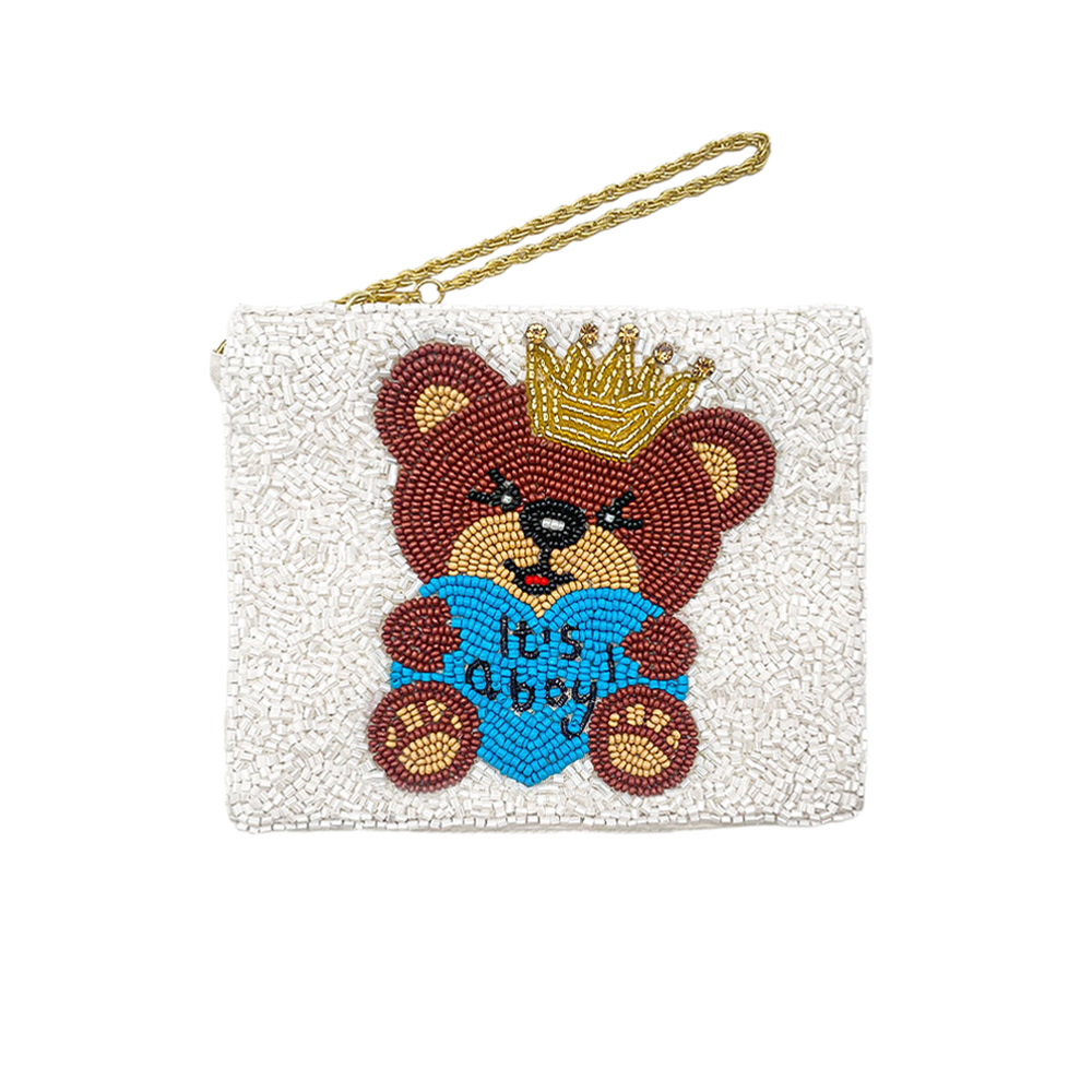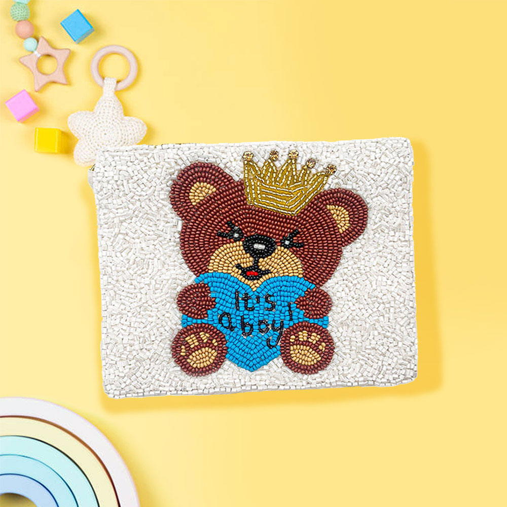 It's a boy! Message Bear Seed Beaded Mini Pouch Bag