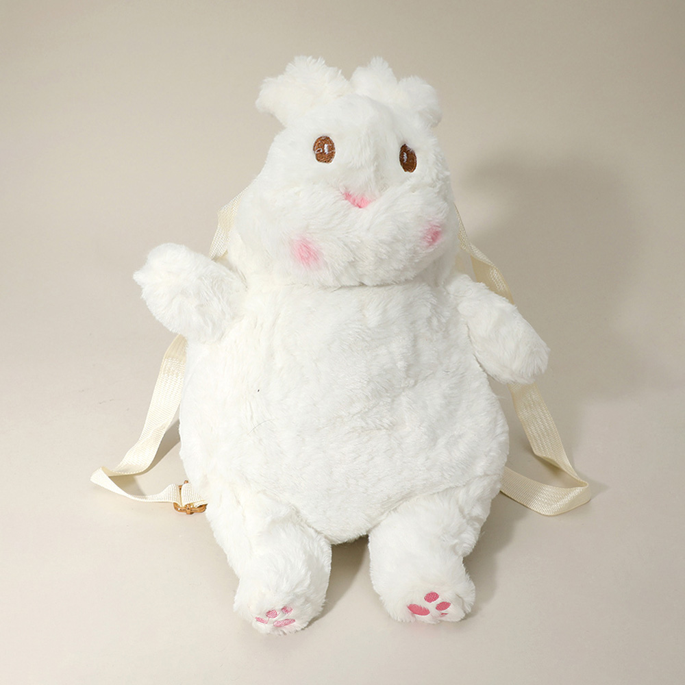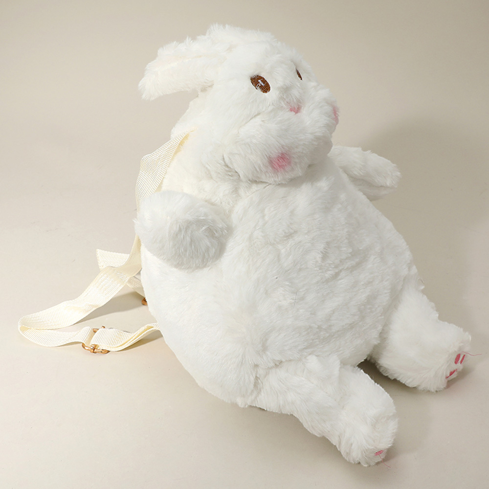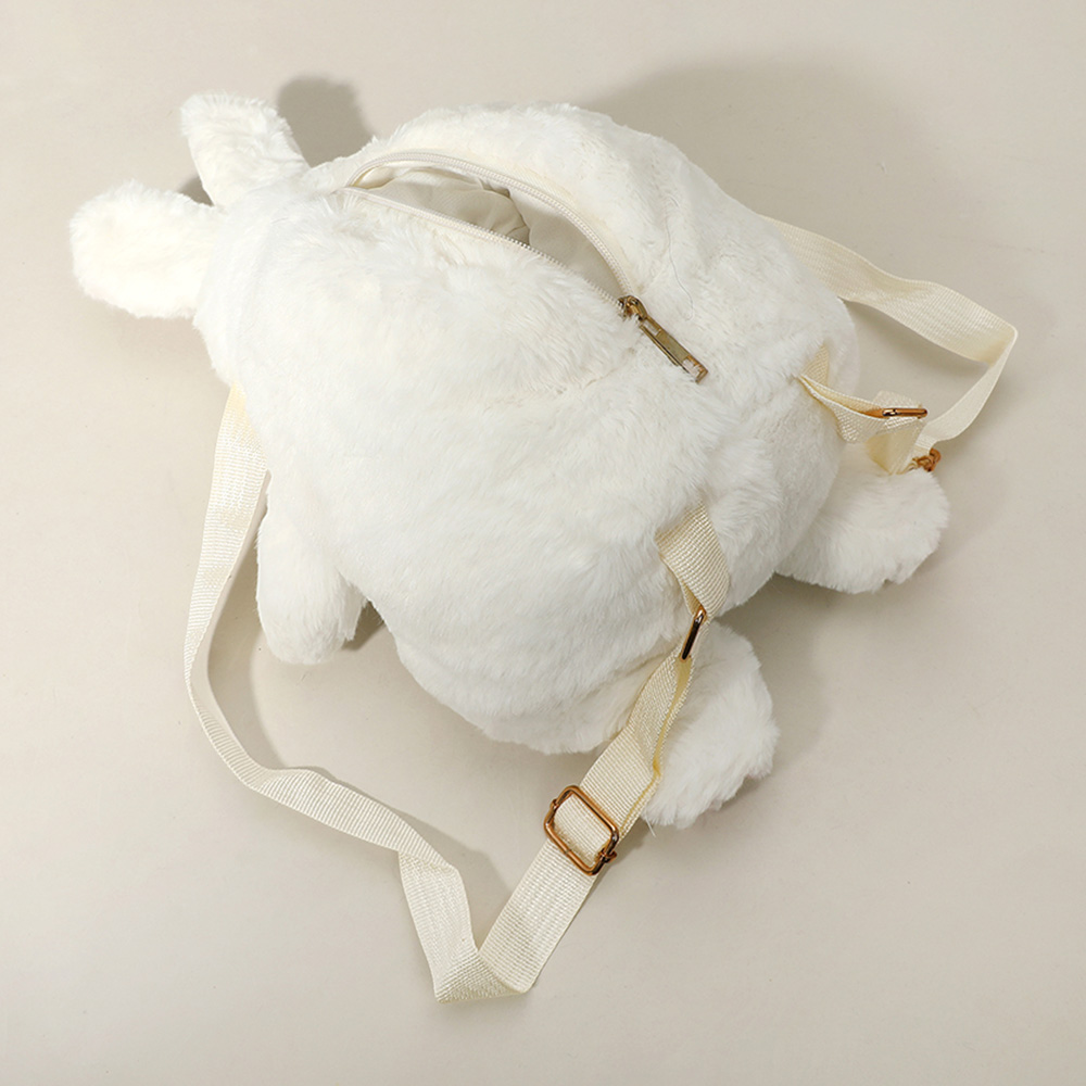 Details • Size : 11" X 13" • Strap Size : Adjustable • Zipper Closure • Adorable plush bunny backpack with soft texture and adjustable straps. Great for carrying small essentials while adding a playful and charming touch. Ideal for kids or animal-themed outfits.