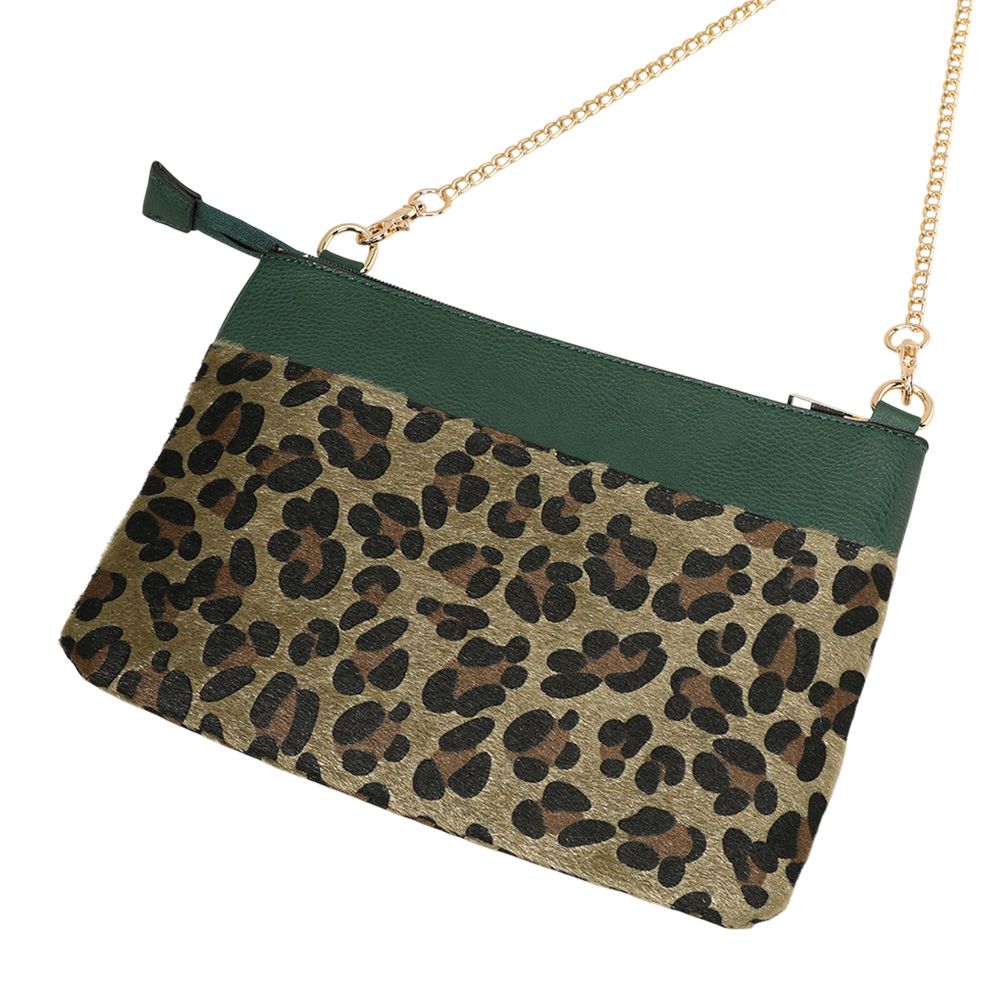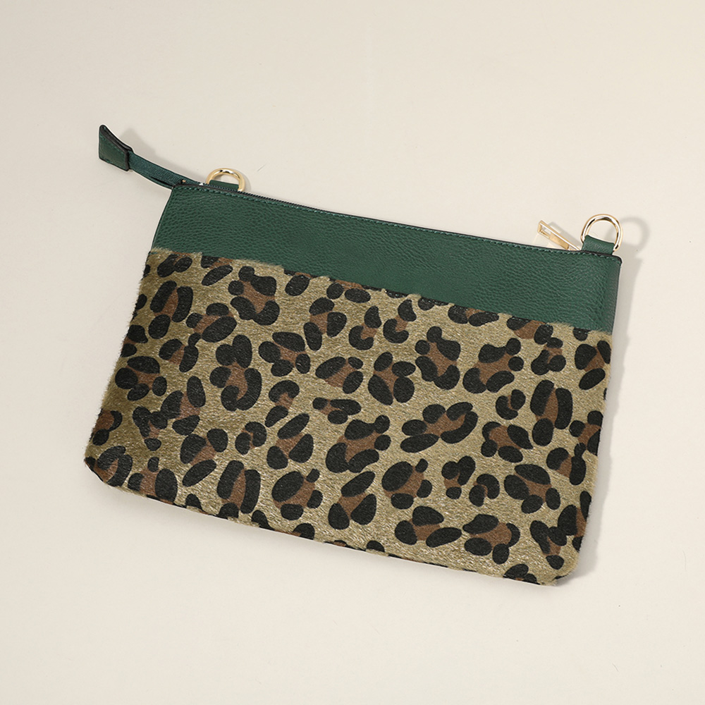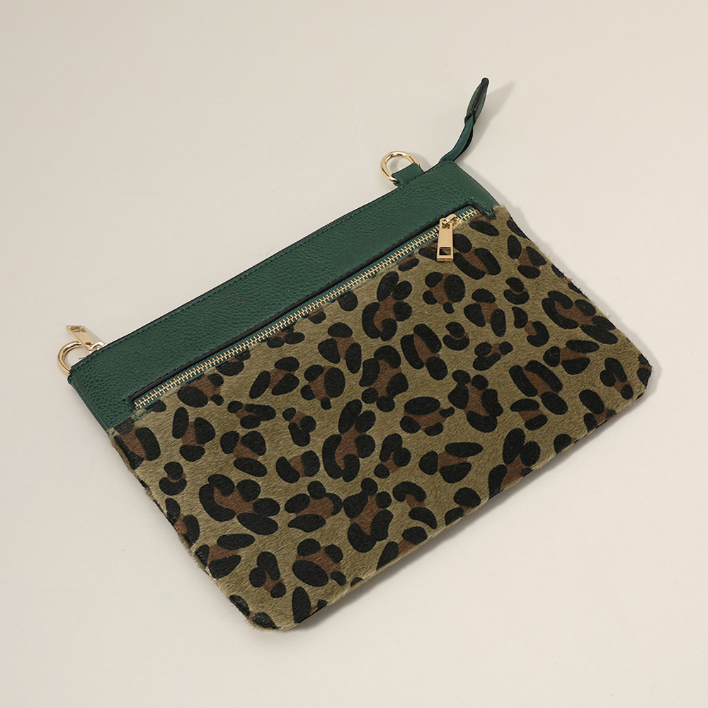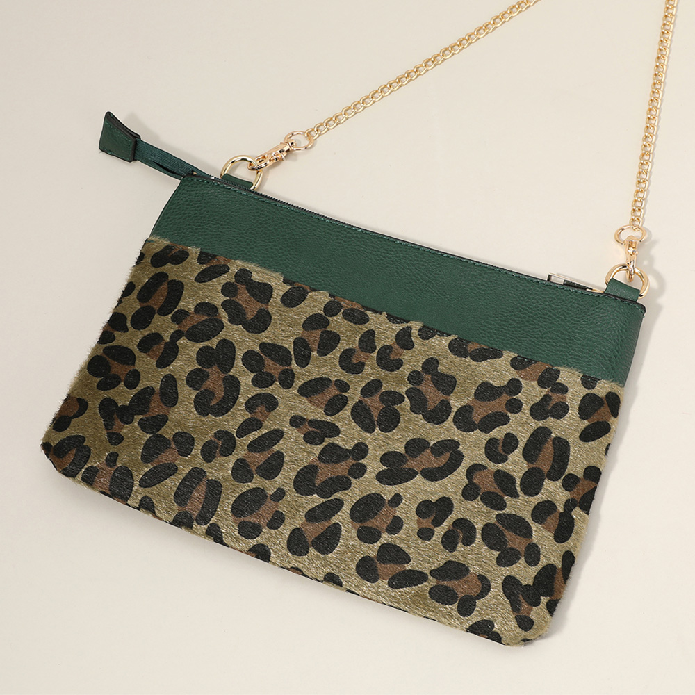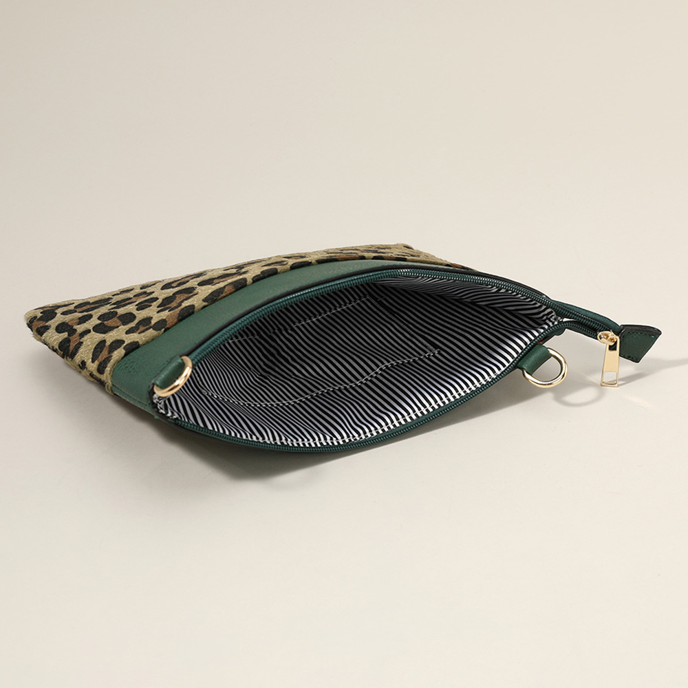 Leopard Patterned Accented Faux Leather Crossbody Bag