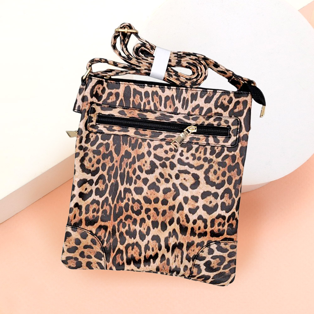Leopard Patterned Faux Leather Crossbody Bag