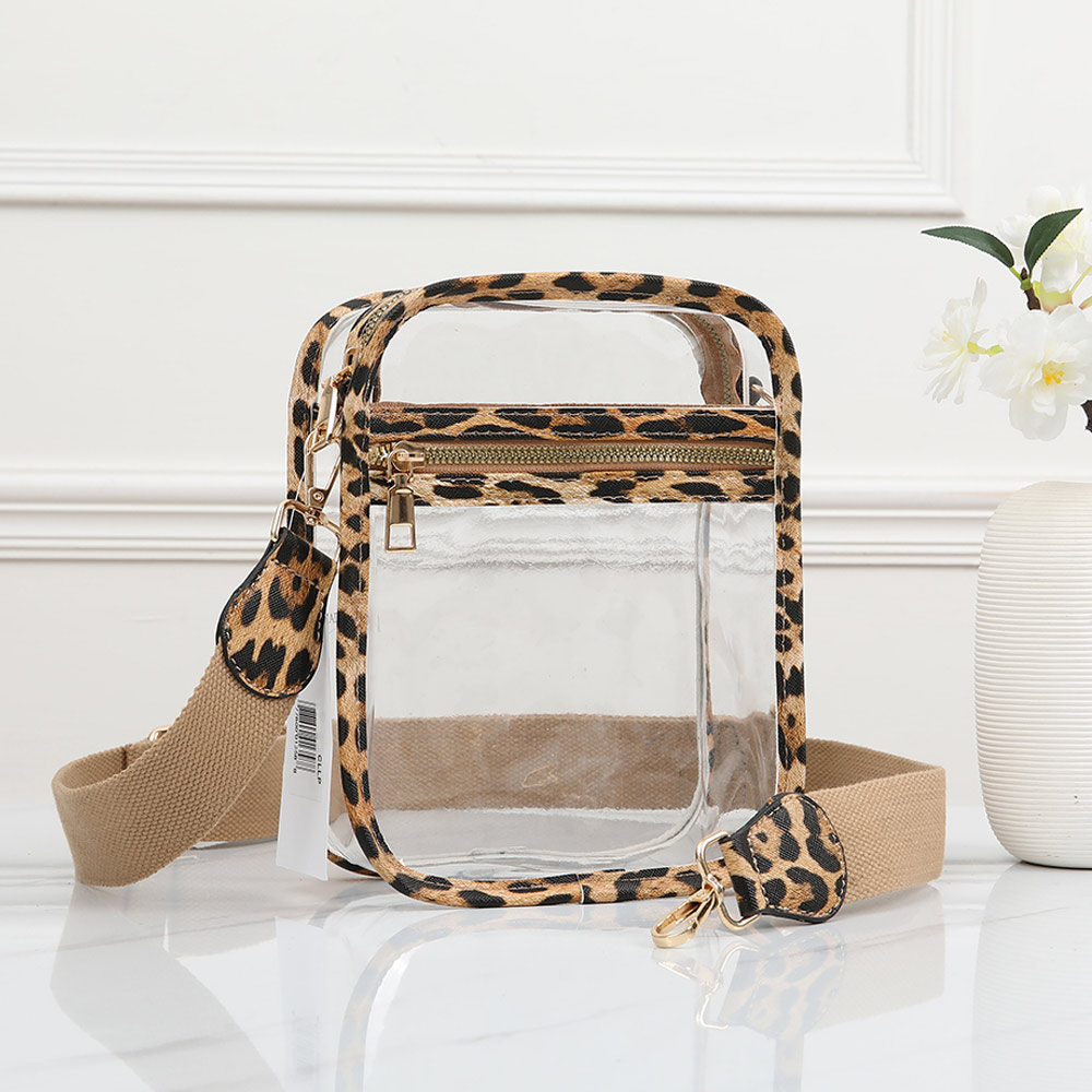 Leopard Patterned Faux Leather Transparent Rectangle Crossbody Bag