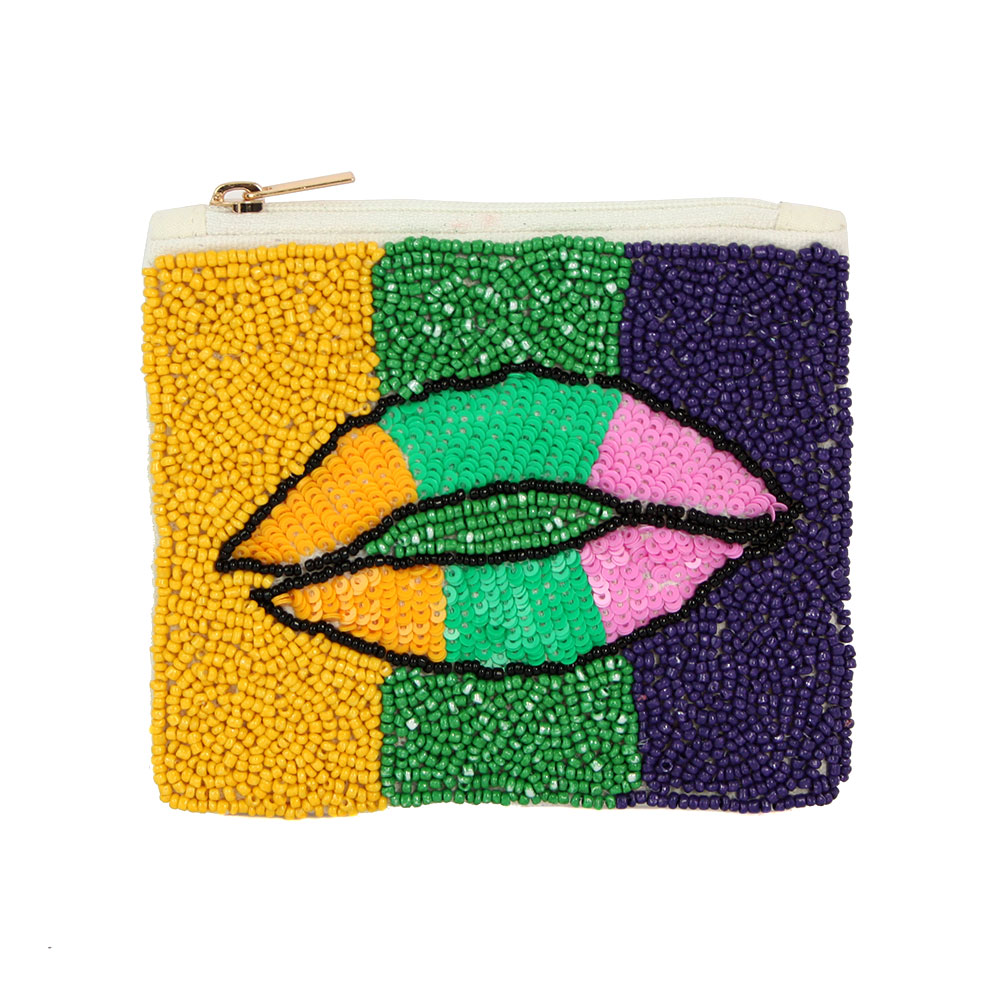 Mardi Gras Lips Seed Beaded Mini Pouch Bag