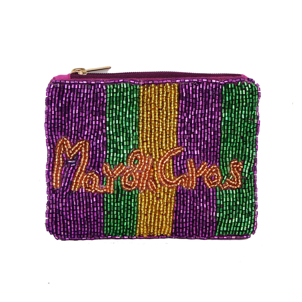 MARDI GRAS Message Seed Beaded Mini Pouch Bag