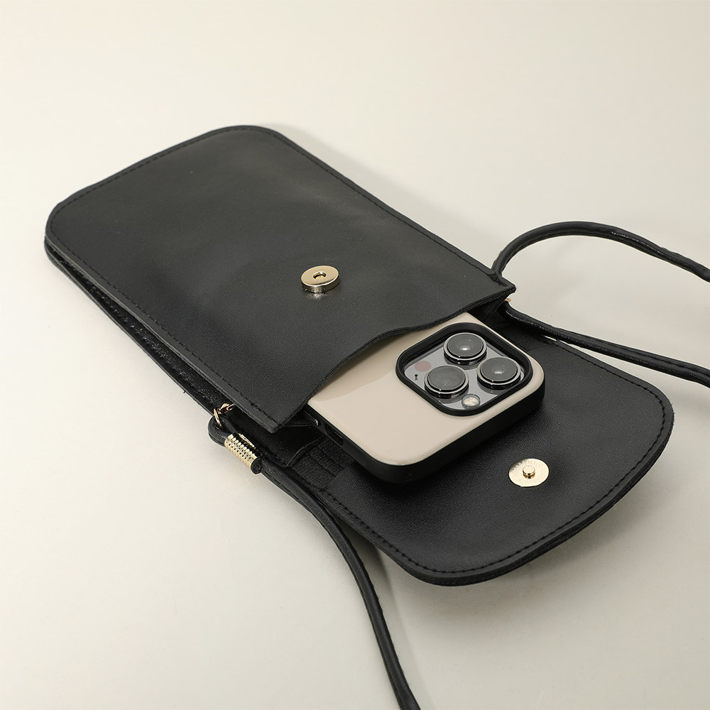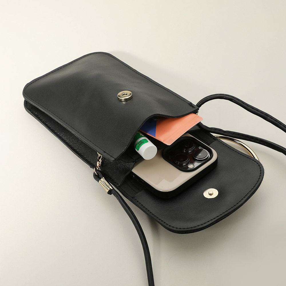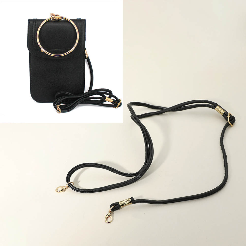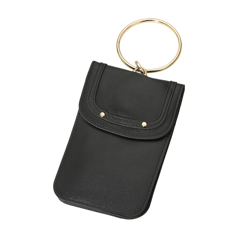 Metal Ring Handle Faux Leather Mini Phone Pouch Clutch Bag / Crossbody Bag