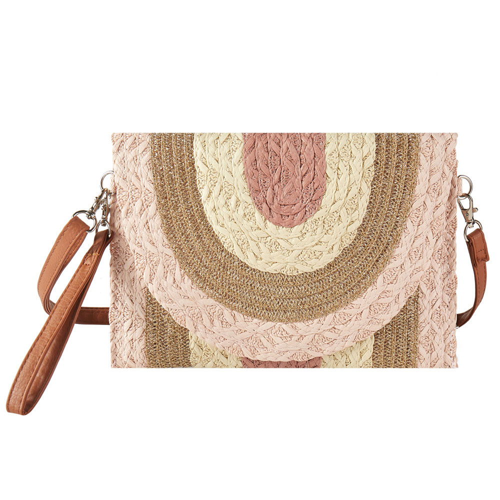 Metallic Lined Multi Color Straw Clutch / Crossbody Bag