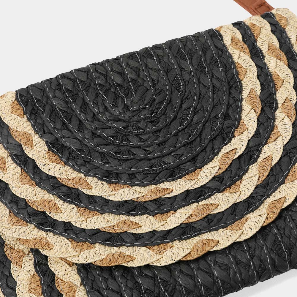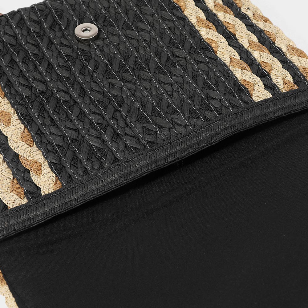 Mixed Color Detail Straw Clutch / Crossbody Bag