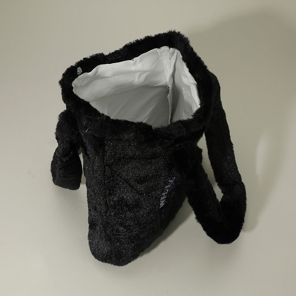 Monster Bunny Character Embroidered Faux Fur Plush Tote Bag