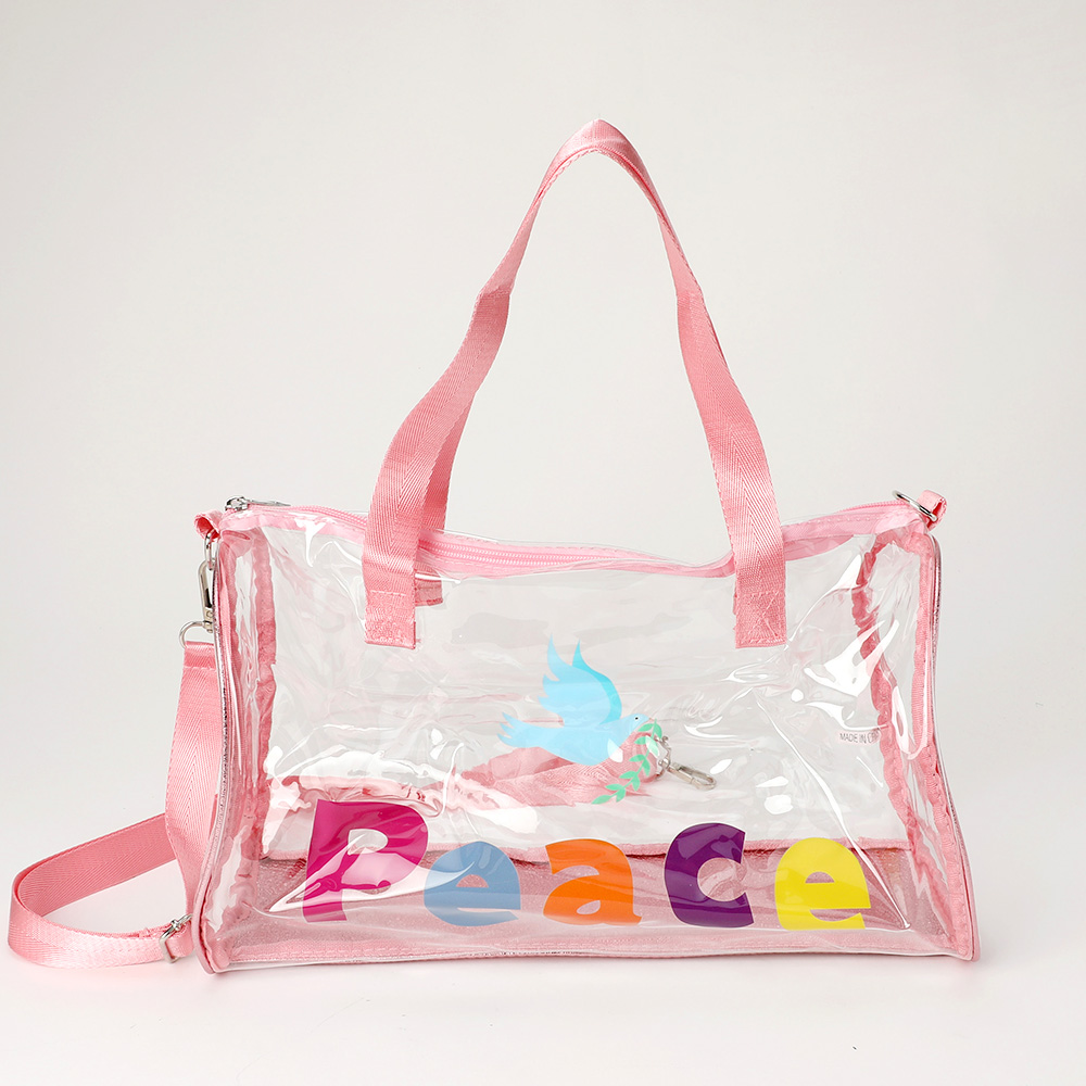 PEACE Message Pigeon Printed Transparent Boston Bag / Crossbody Bag