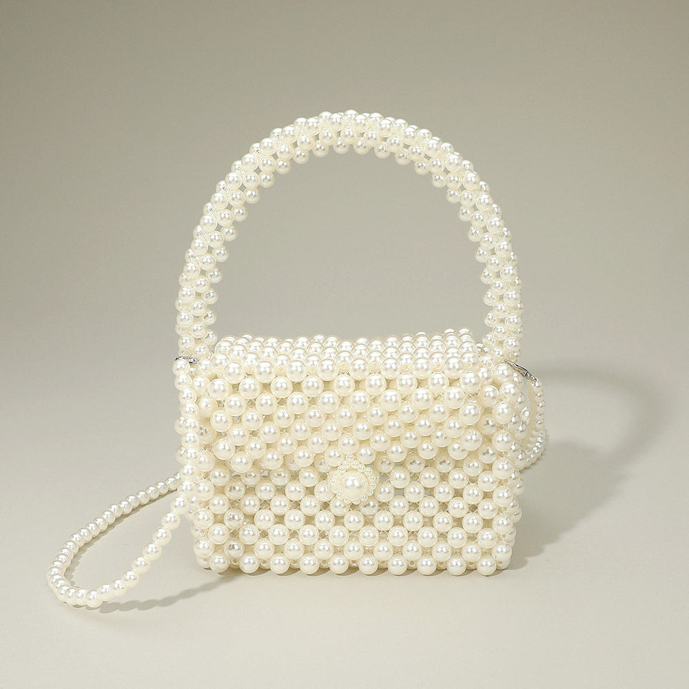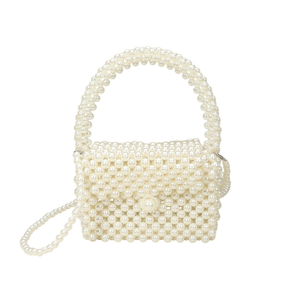 Pearl Beaded Mini Top Handle Flap Box Handbag / Crossbody Bag