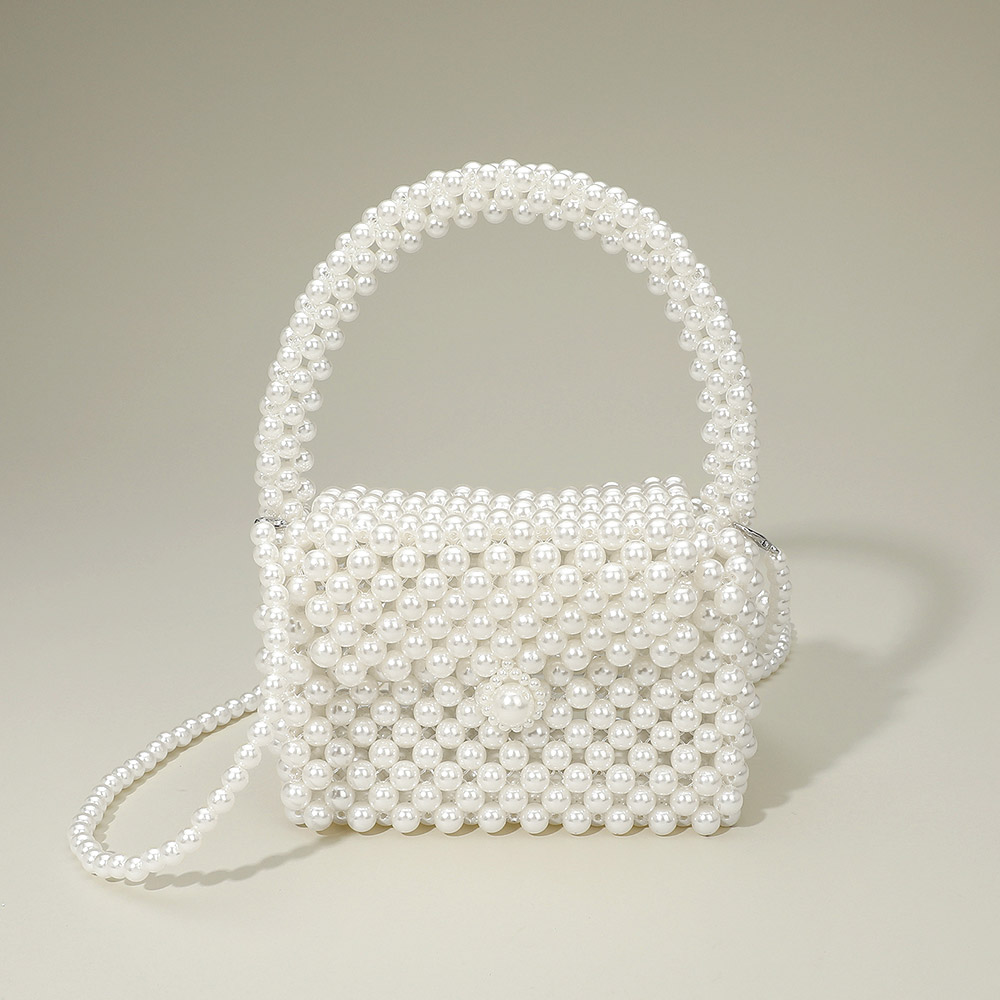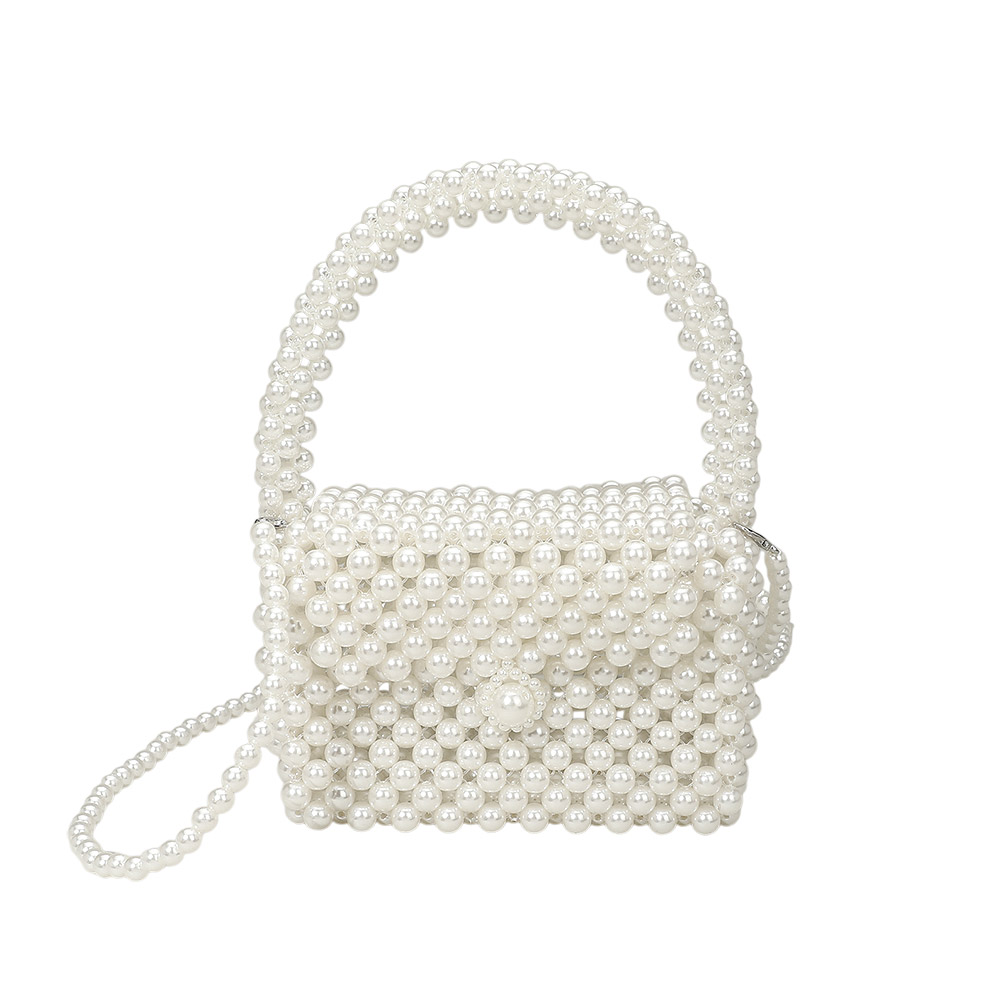 Pearl Beaded Mini Top Handle Flap Box Handbag / Crossbody Bag