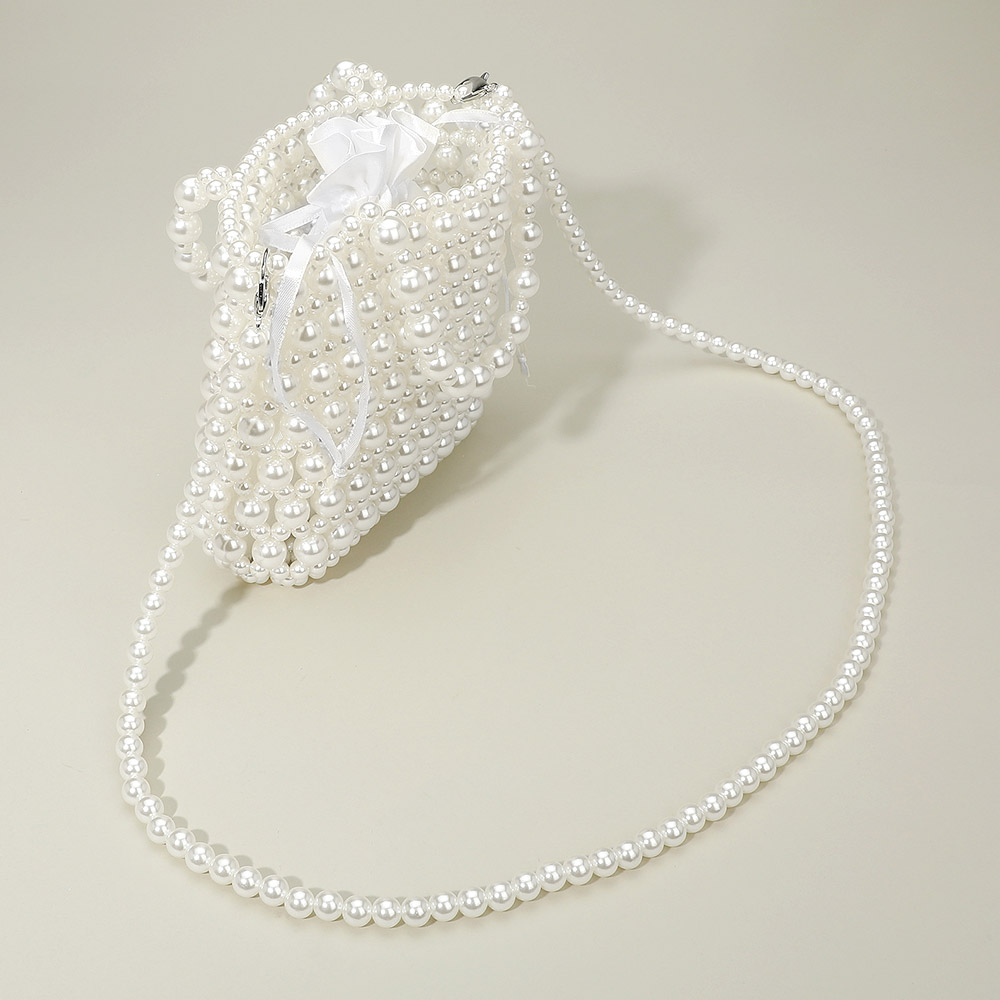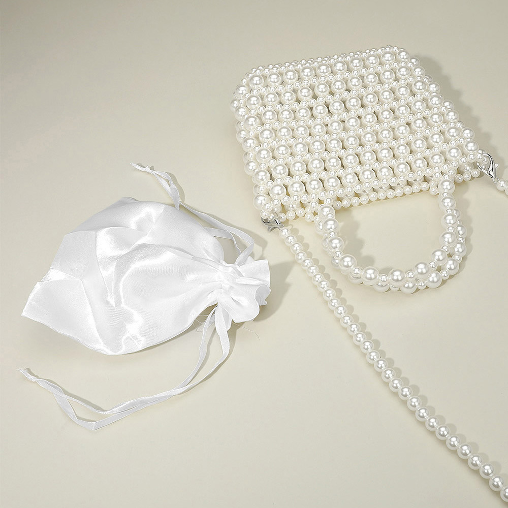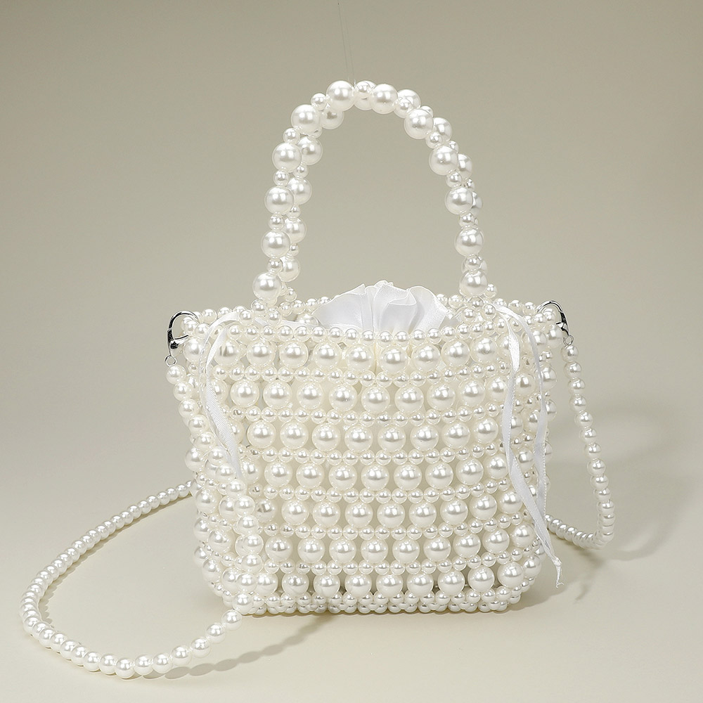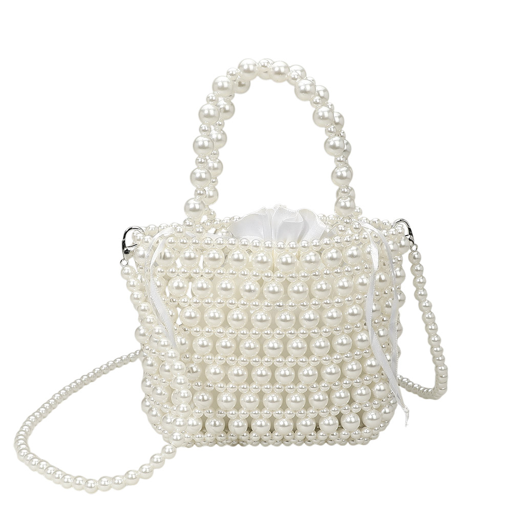 Pearl Beaded Top Handle Drawstring Pouch Handbag / Crossbody Bag