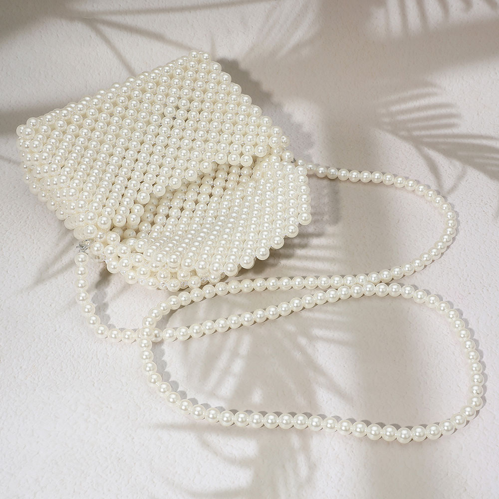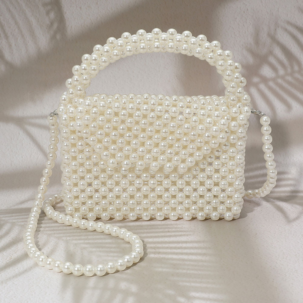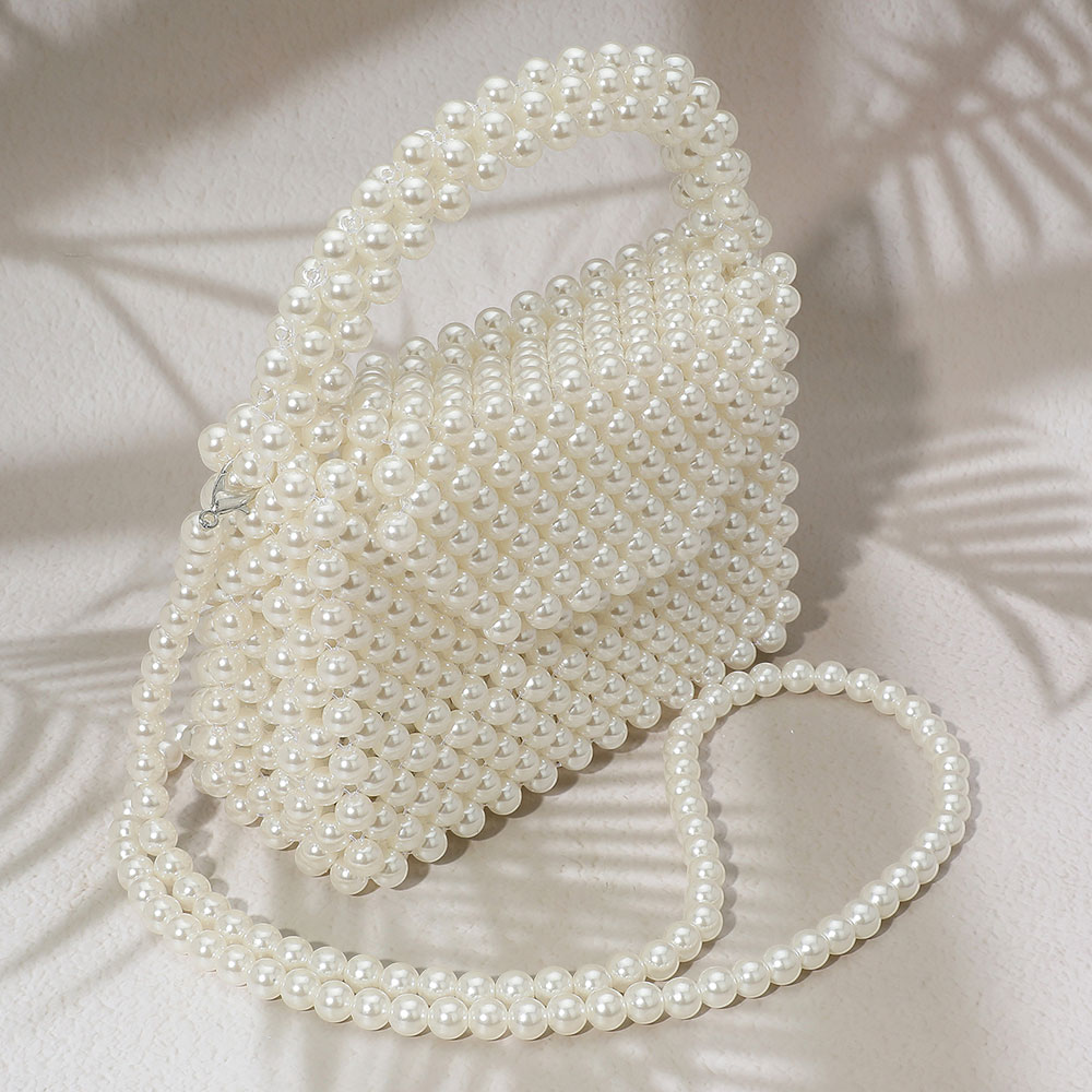 Details • Size : 6.75" X 5" X 2.75" • Top Handle Size : 1.5" L • Strap Size : 44" L / Detachable • Elevate your ensemble with this pearl beaded handbag, designed with a structured body, rounded top handle, and coordinating crossbody strap. Ideal for weddings, parties, or special occasions, this bag adds elegance and texture to any sophisticated or playful look.