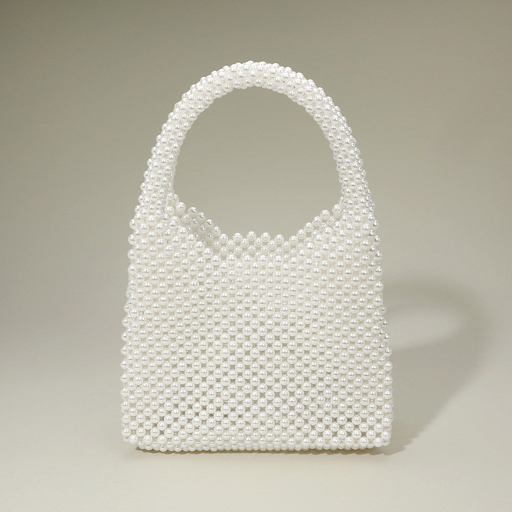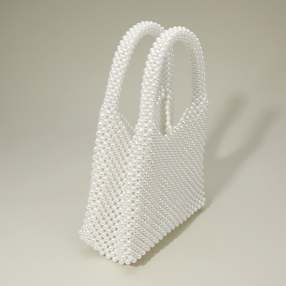 Details • Size : 8" X 3" X 4" • Top Handle Size : 5" L • Structured handbag fully embellished with uniform beads, featuring double rounded handles for easy carry. A standout accessory ideal for parties, weddings, or evening events, combining style and sophistication.
