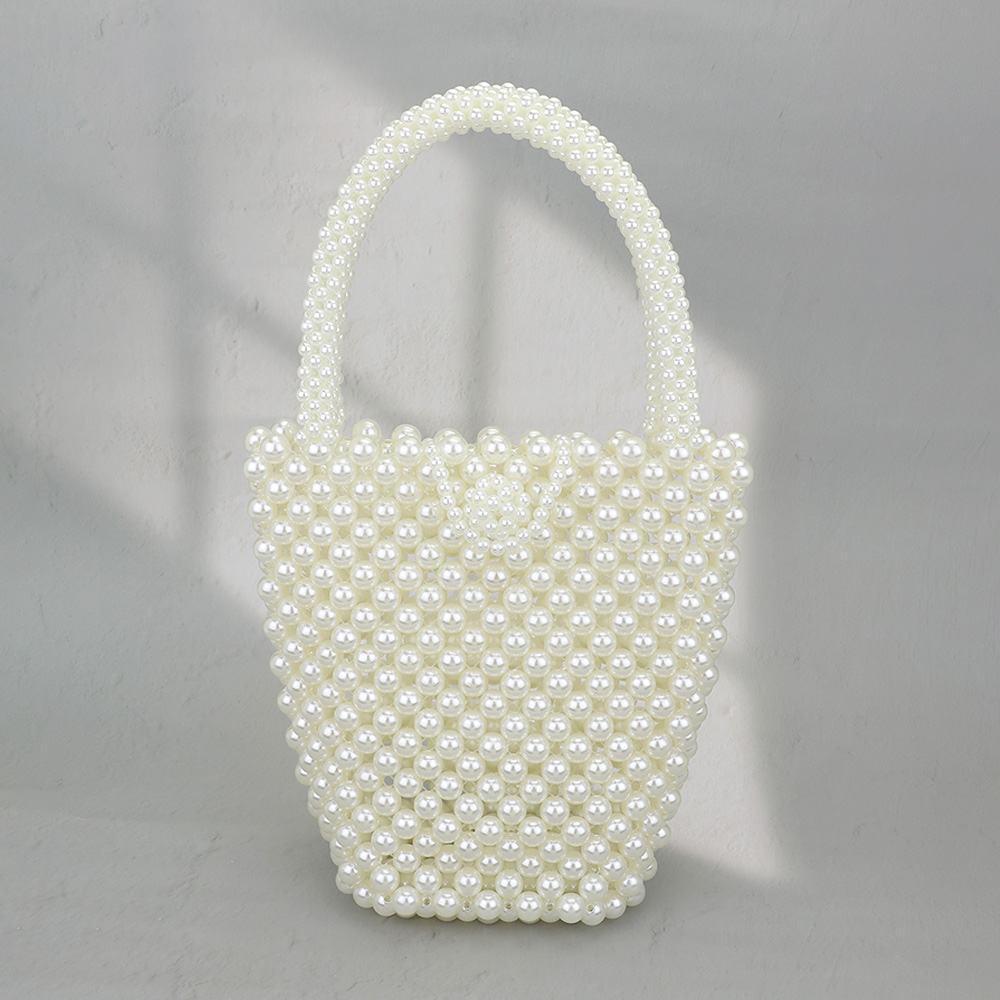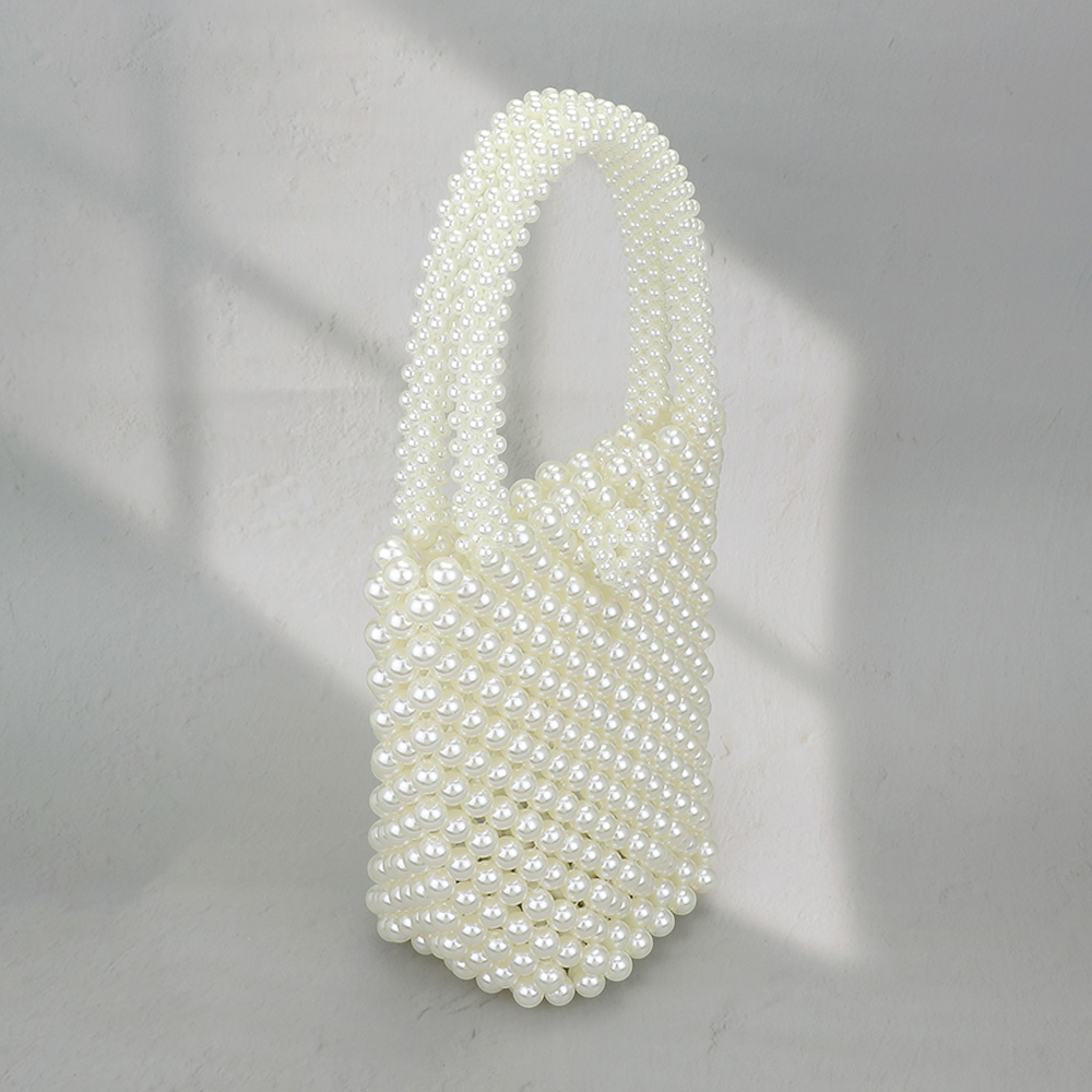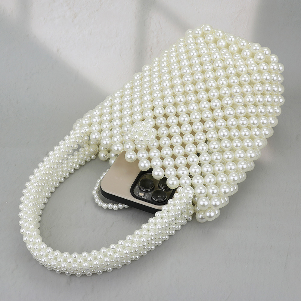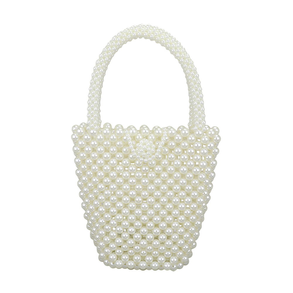 Details • Size : 7.5" X 7.25" X 3.5" • Top Handle Size : 4.75" L • Elegant beaded handbag with a compact tote shape and allover pearl design. Perfect for formal occasions, date nights, or bridal events, this stylish accessory brings charm and refinement to any outfit.