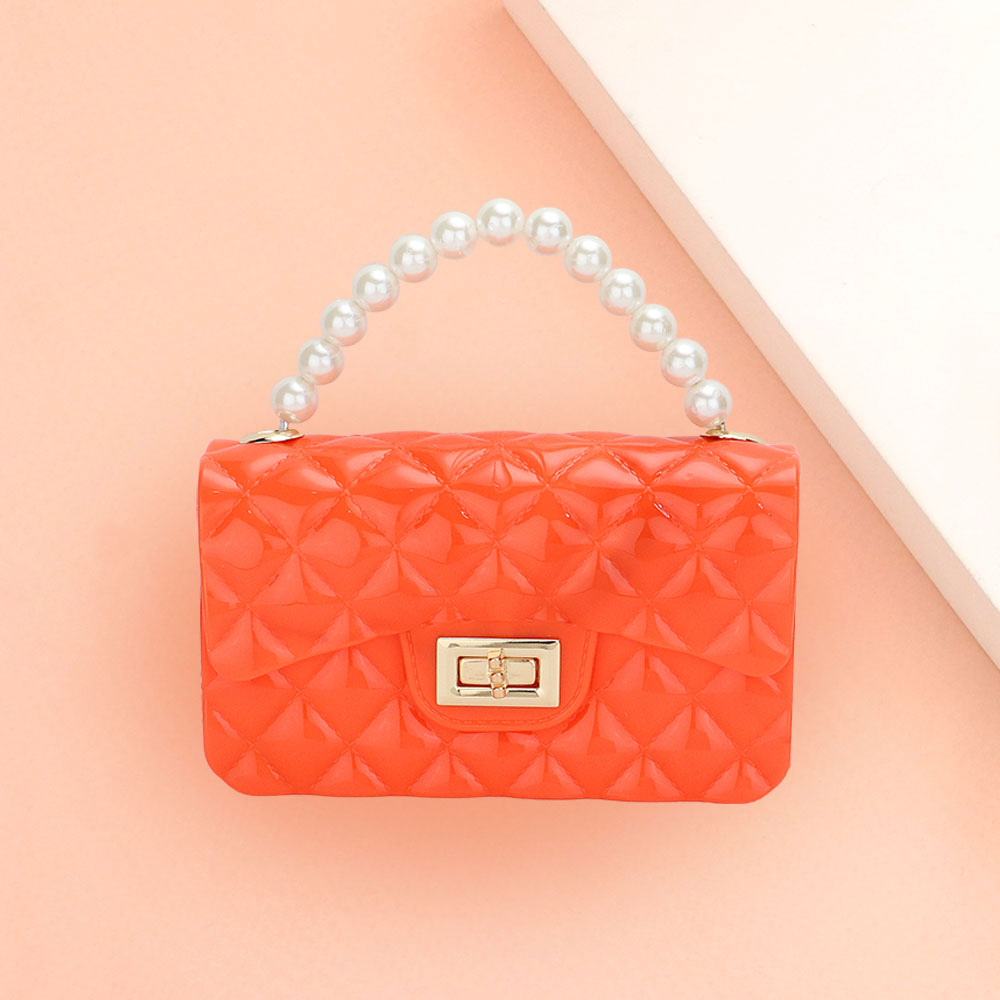 Pearl Top Handle Jelly Flap Purse / Crossbody Bag