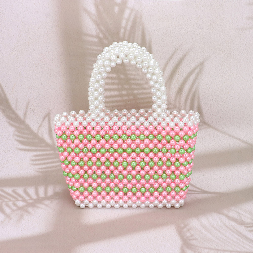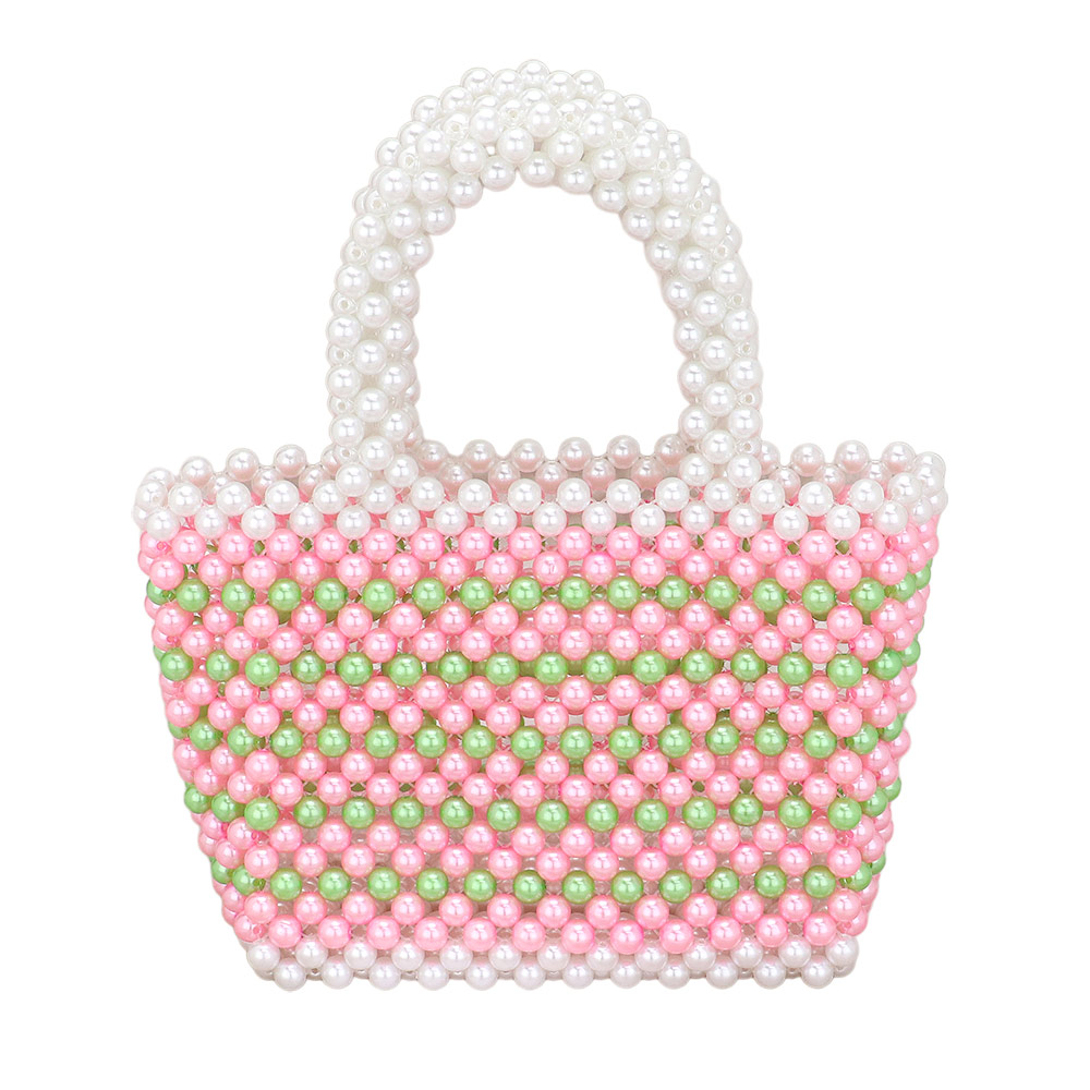 Details • Bag Size : 7" X 6" X 3.5" • Top Handle Size : 4.25" L • No Inside Pocket • This mini handbag features a refined beaded exterior with a structured silhouette and curved top handles. Ideal for evening events or statement accessorizing, it brings a bold yet elegant flair to any outfit.