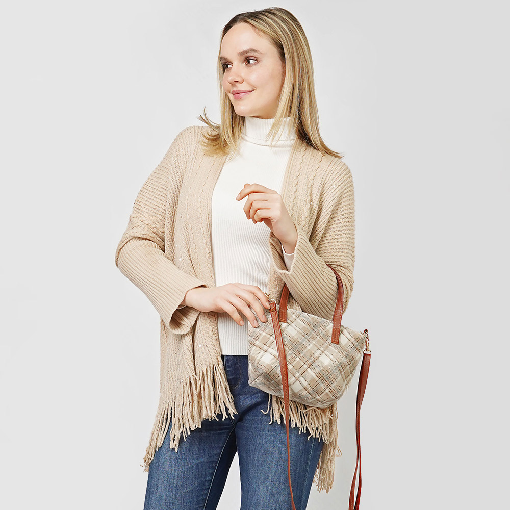 Plaid Check Patterned Tote / Crossbody Bag