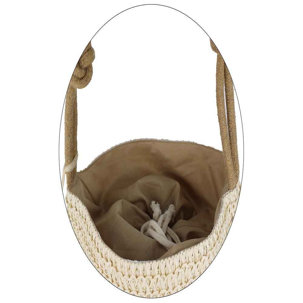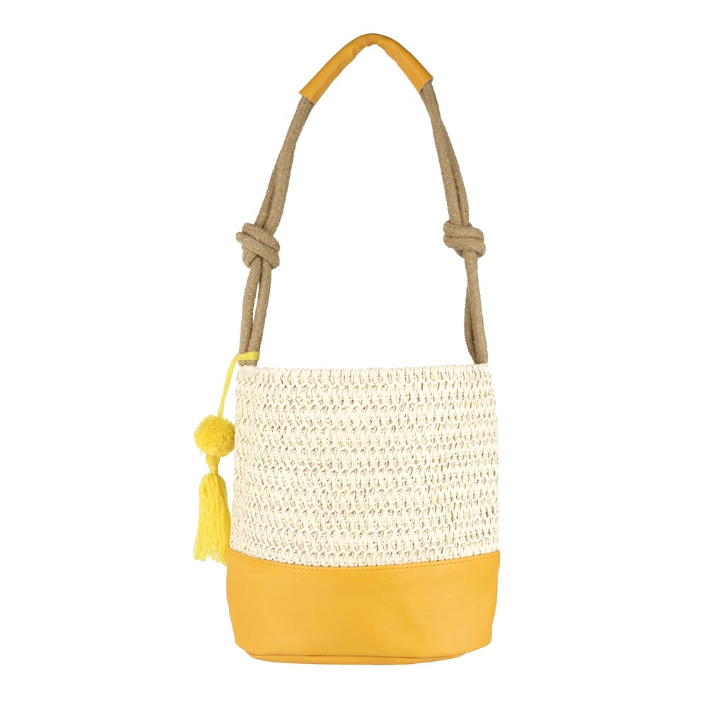 PU Button Straw Bucket Bag With Pom Pom Tassel
