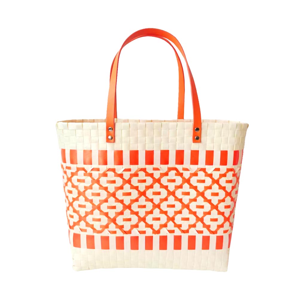 Quatrefoil Patterned Basket Weave Tote Bag / Shoulder Bag