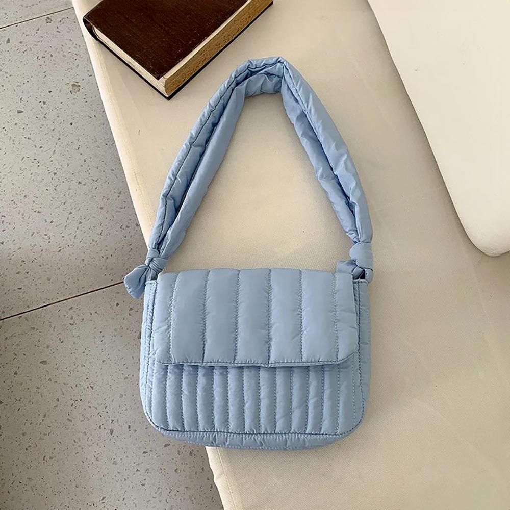 • Add comfort and style to your wardrobe with this padded shoulder bag, designed with a wide knotted strap, spacious interior, and lightweight feel. Perfect for everyday wear, this trendy tote blends functionality with a modern casual look.