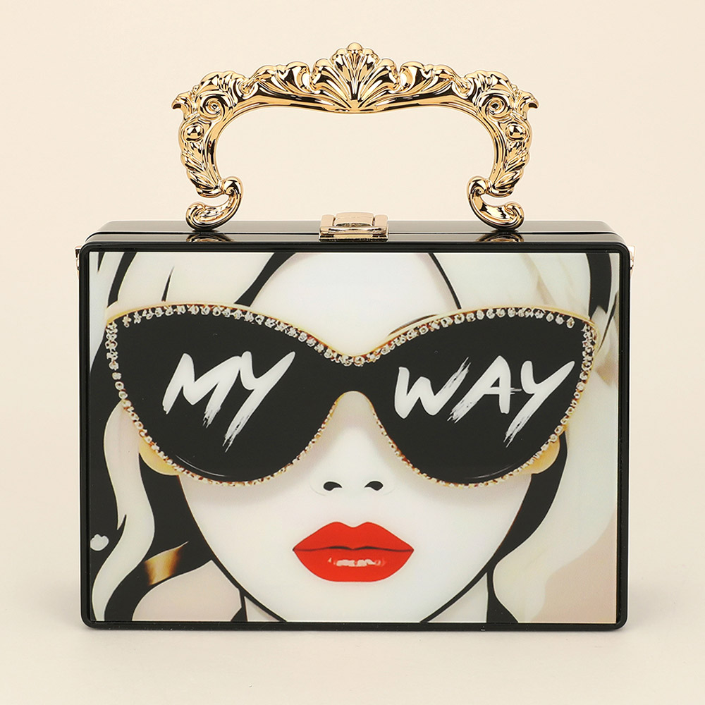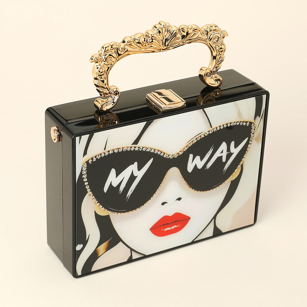 Retro Pop Art Lady My Way Message Printed Box Clutch Bag / Crossbody Bag