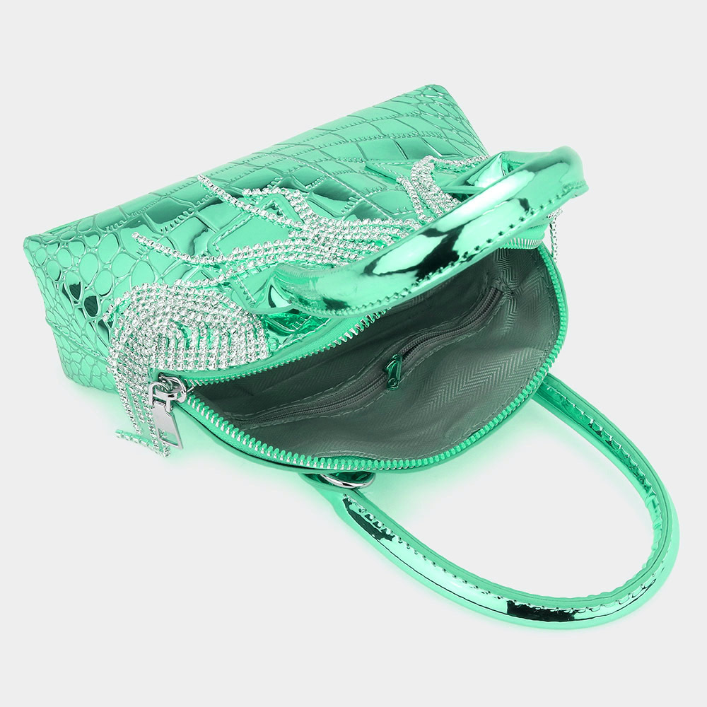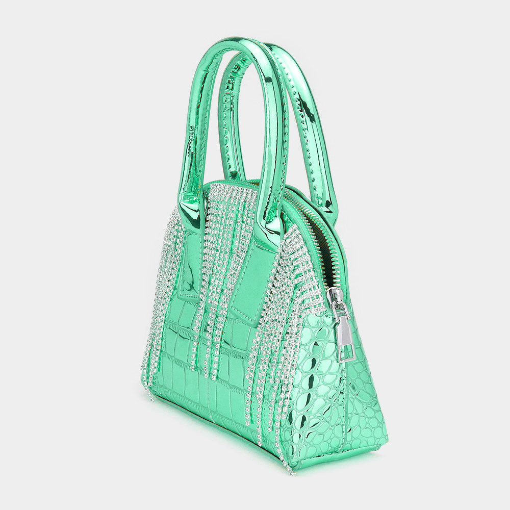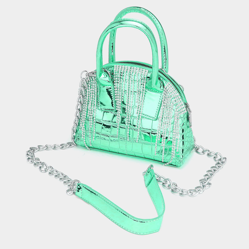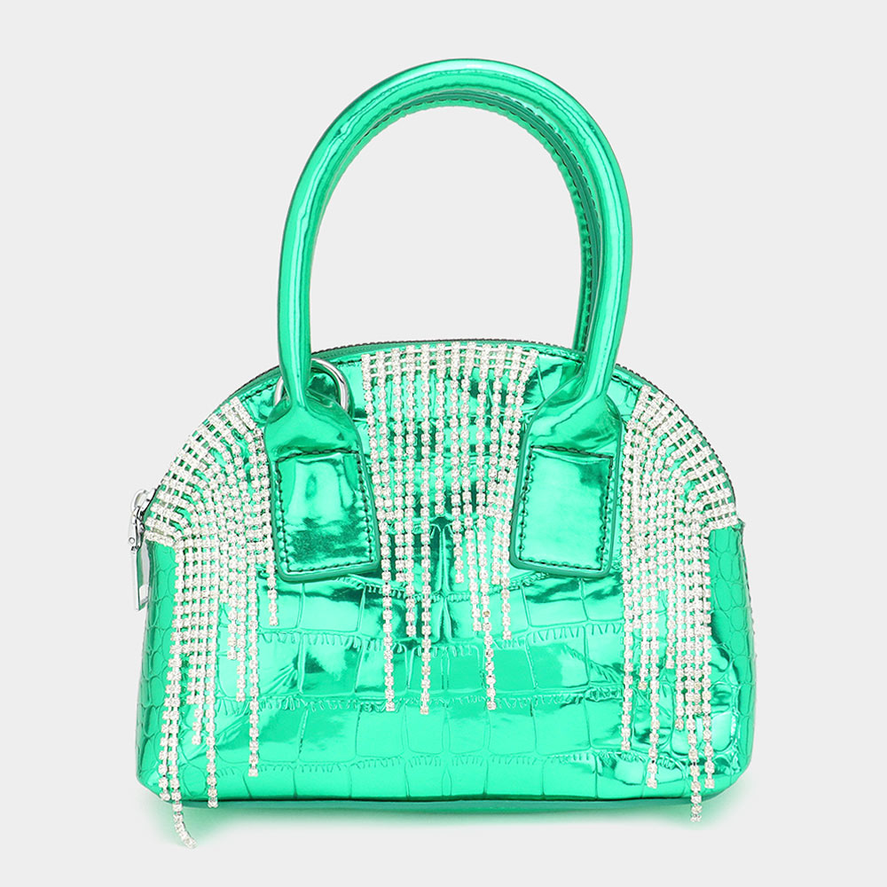 Rhinestone Embellished Metallic Tote / Crossbody Bag