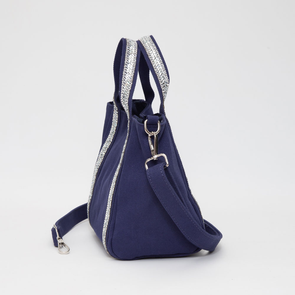 Rhinestone Embellished Strap Accent Mini Canvas Tote Bag / Crossbody Bag