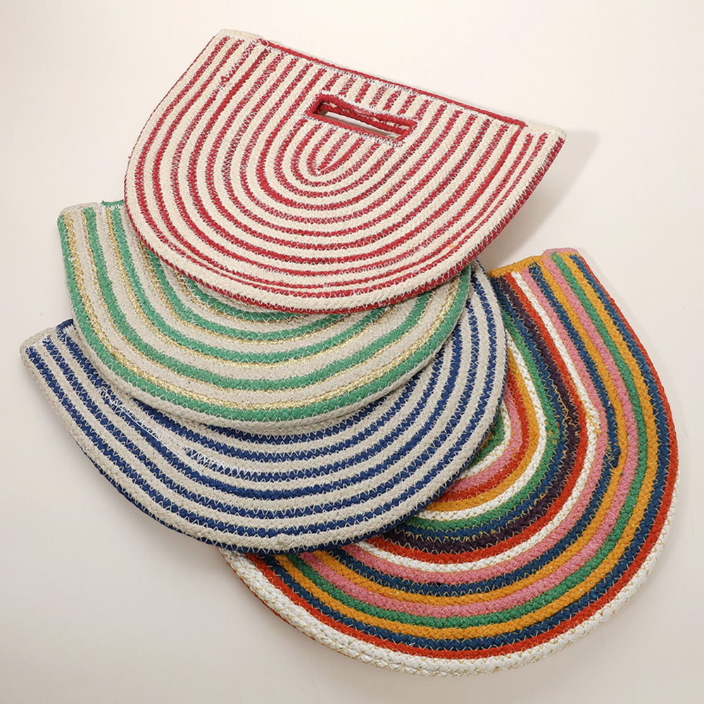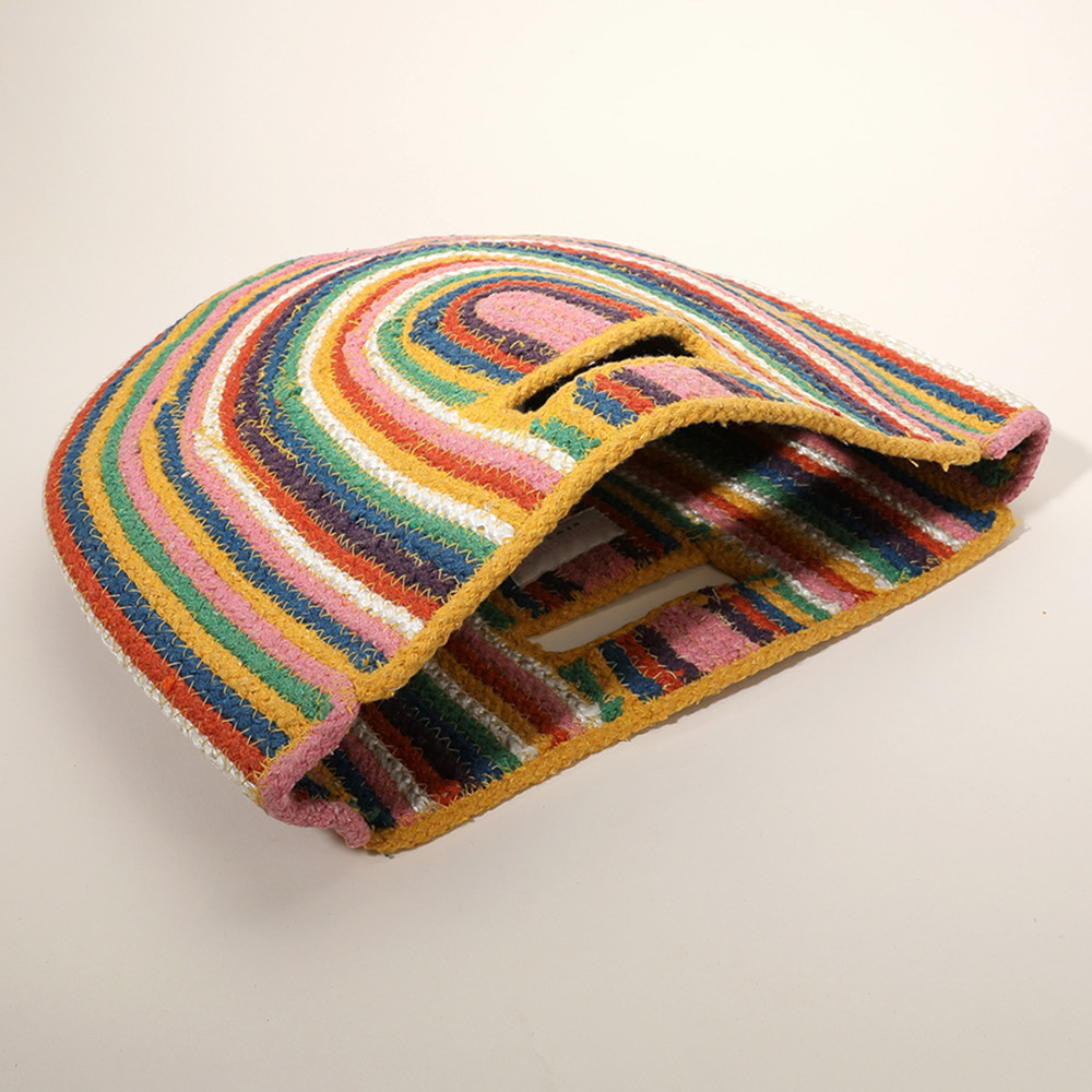 Round Stripped Knitted Woven Tote Bag
