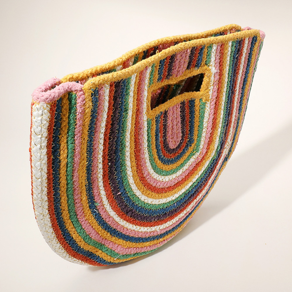 Round Stripped Knitted Woven Tote Bag