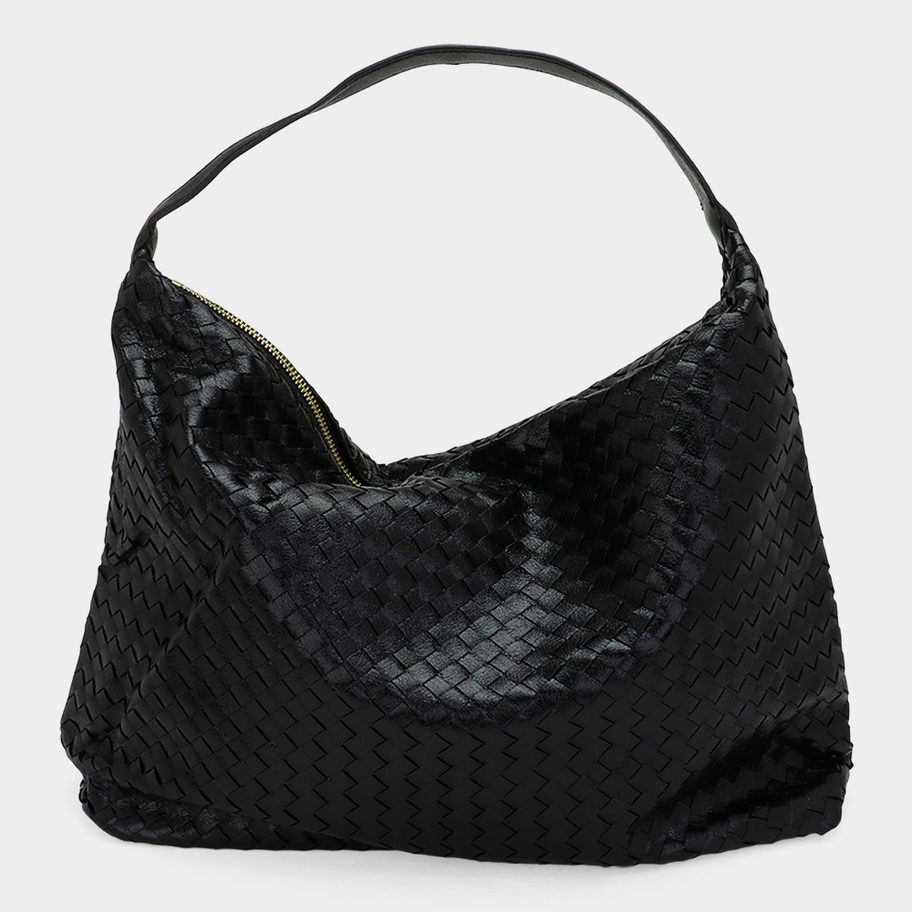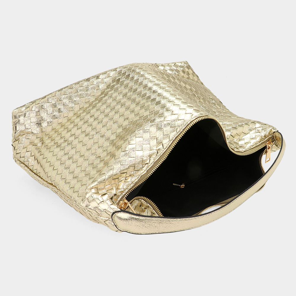 Shiny Faux Leather Braided Shoulder Shopper Bag
