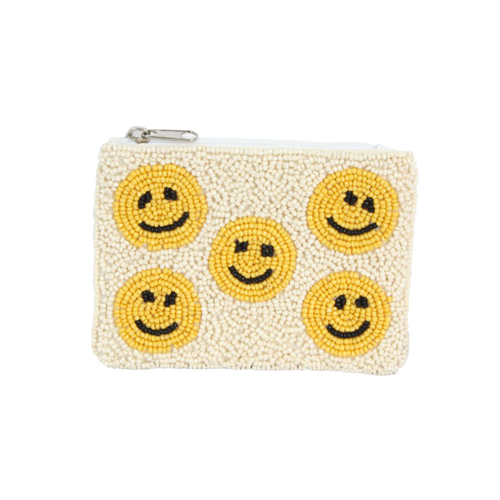 Smile Face Pattern Seed Beaded Mini Pouch Bag