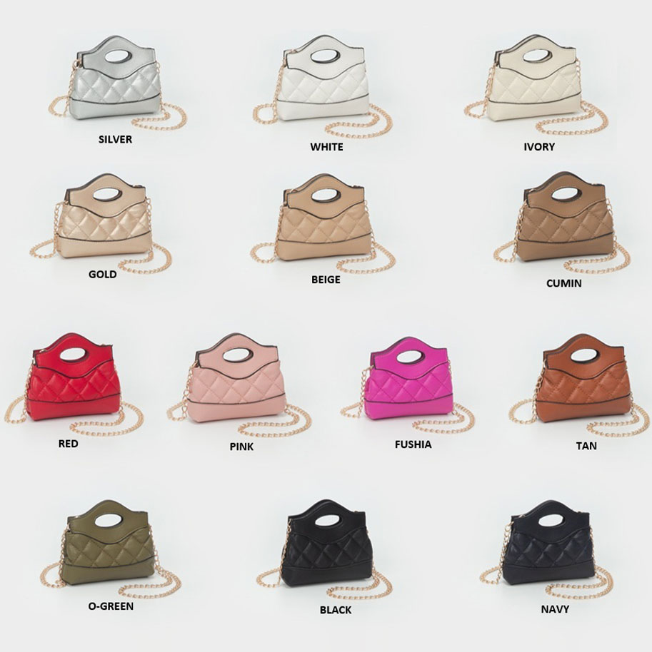 Details • Size : 5.5" X 4" X 1.25" • Top Handle Size : 0.8" L • Strap Size : 42" L / Detachable • Magnetic Closure • Stay stylish and organized with this mini quilted crossbody bag featuring a sleek chain strap and unique cutout handle. Perfect for carrying essentials like cards, keys, and small items, it offers trendy convenience for outings, travel, and everyday use while adding a chic touch to any look.