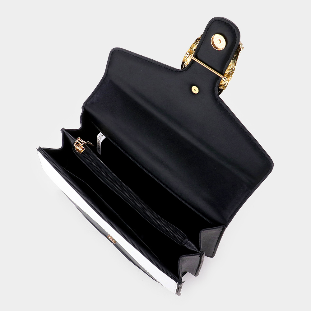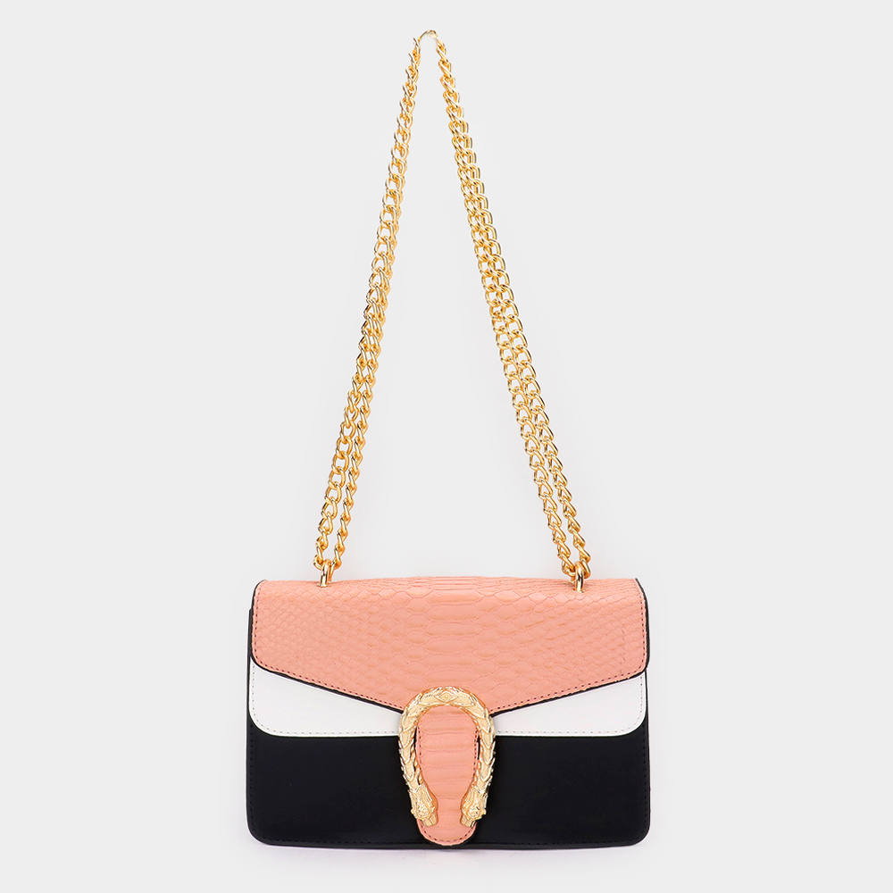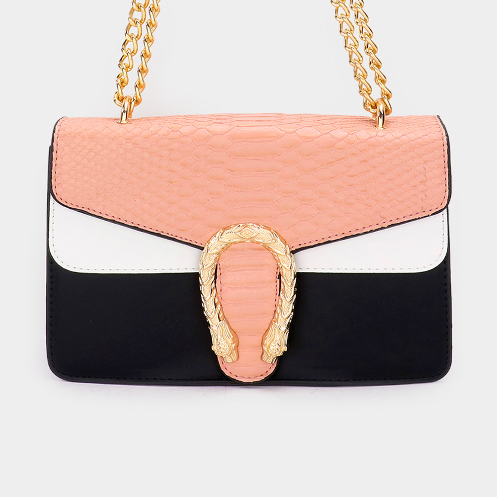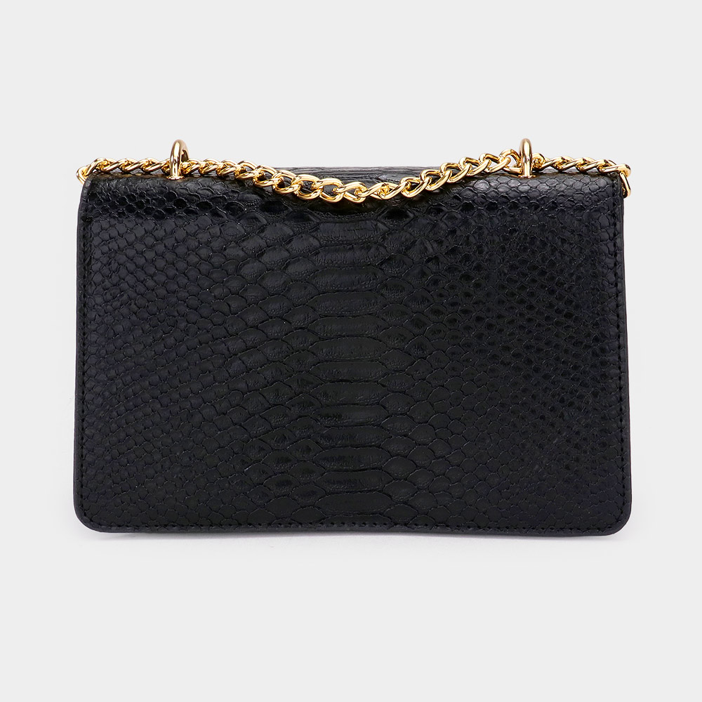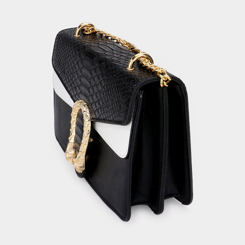 Snake Accented Faux Leather Shoulder / Crossbody Bag