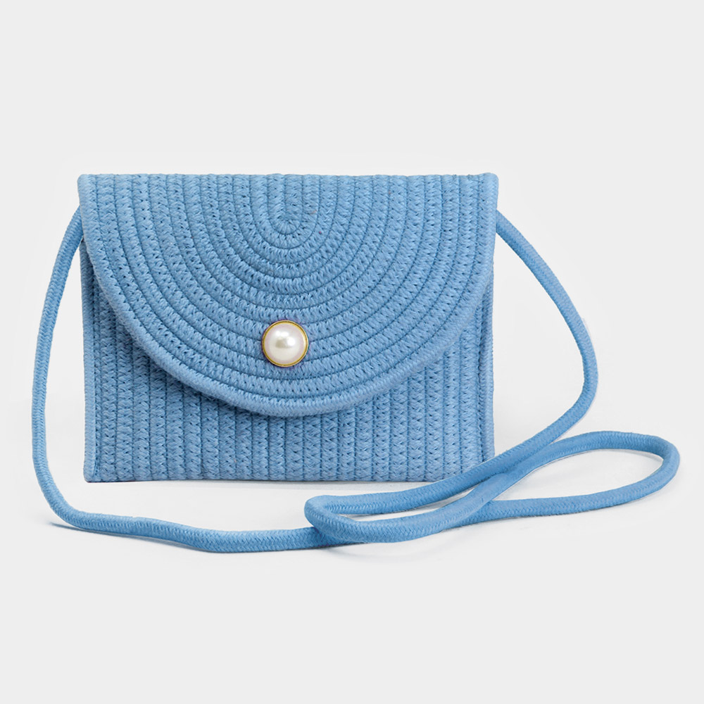Solid Color With Pearl Button Straw Micro Crossbody Bag