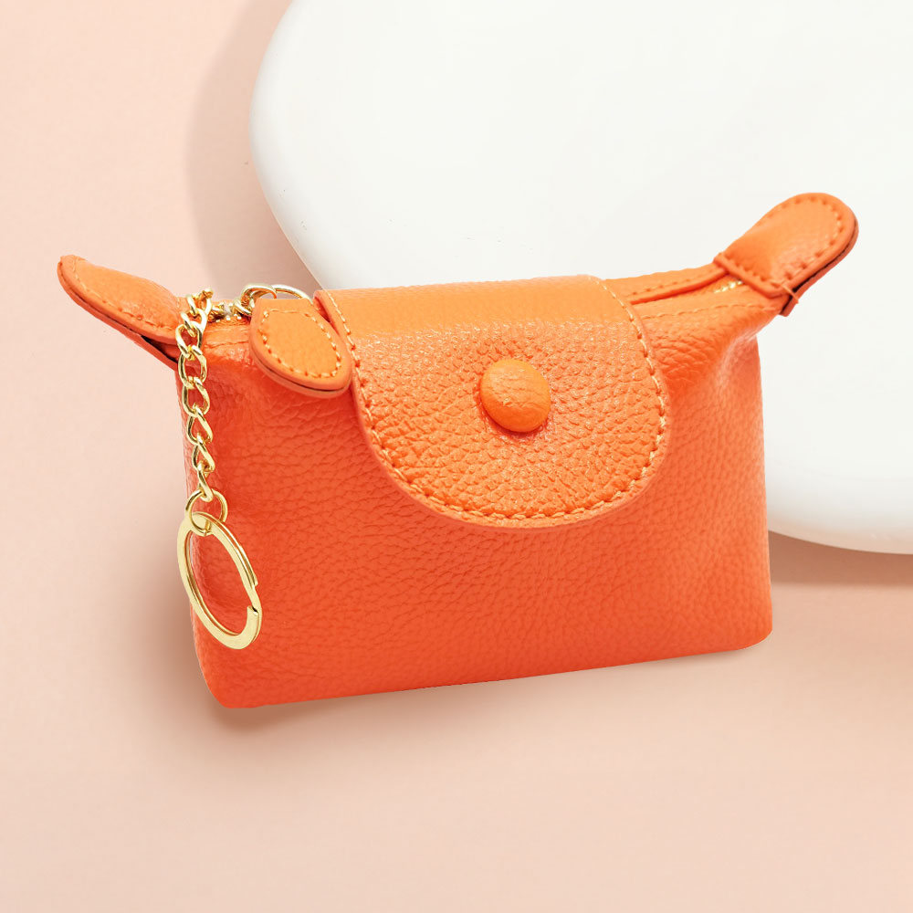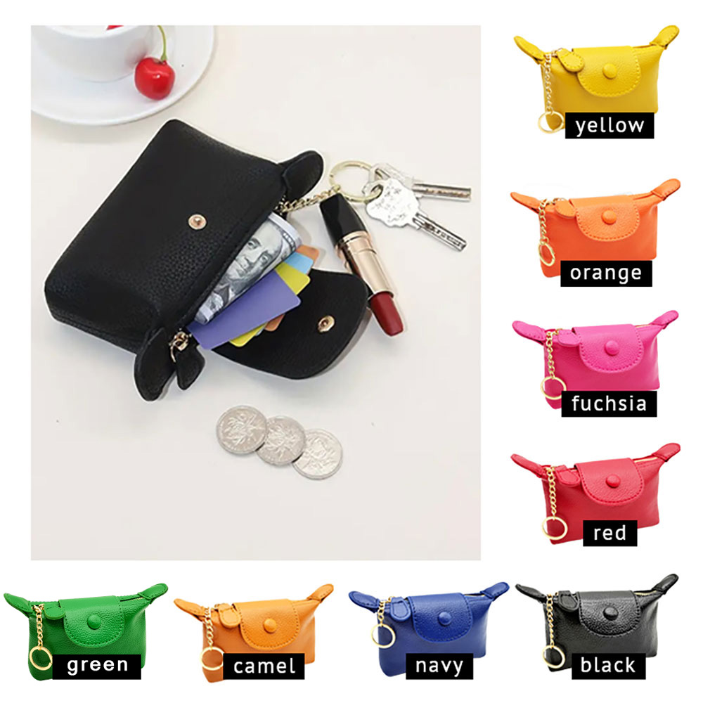 Details • Size : 5" X 3" X 0.75" • Material : 100% Polyurethane • Snap Button Closure • Zipper Closure • Stay organized on the go with this compact wallet pouch featuring dual compartments—zipper and snap—for coins, cards, cash, and small essentials. With a keyring and chic design, it clips to bags or keys for everyday convenience and style in one versatile accessory.