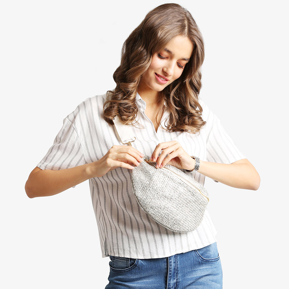 Solid Embroidered Crossbody Belt Bag / Sling Bag / Fanny Pack