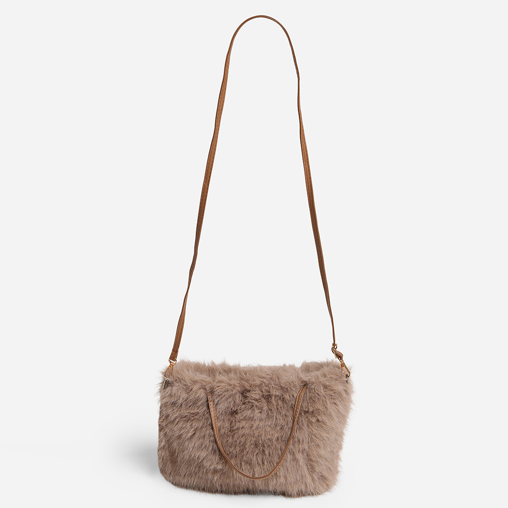 • Add a touch of soft sophistication to your outfit with this plush faux fur crossbody bag. Designed with a compact shape and comfortable strap, it offers both function and elegance, making it a versatile choice for casual outings or elevated day-to-night looks.