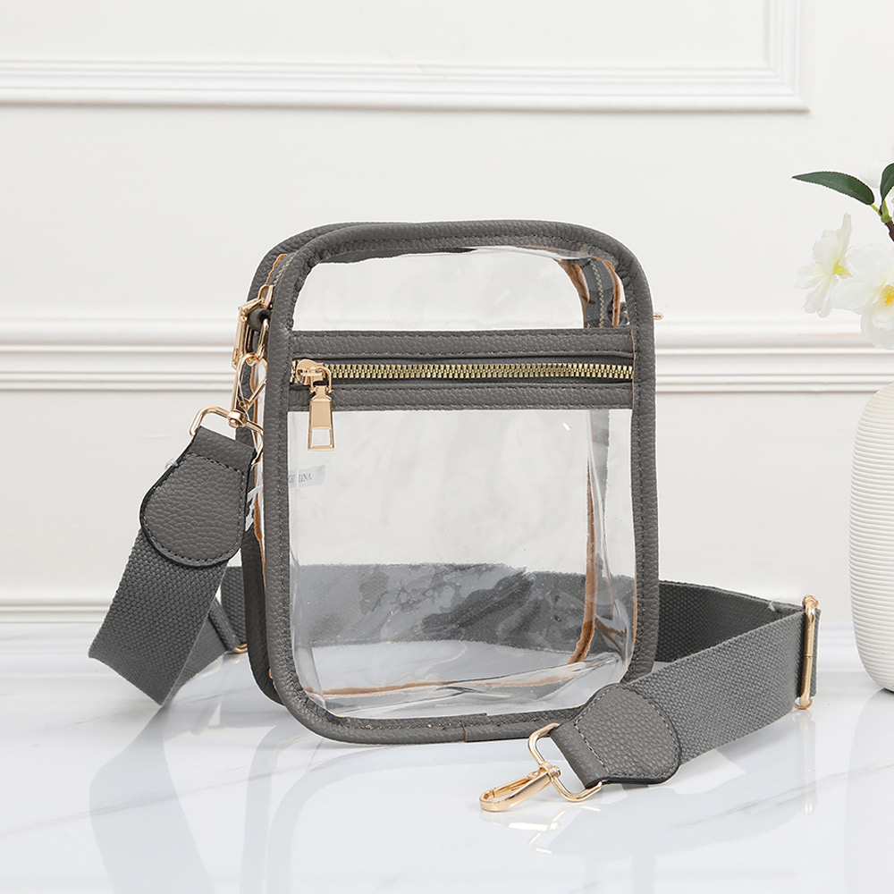 Solid Faux Leather Transparent Rectangle Crossbody Bag