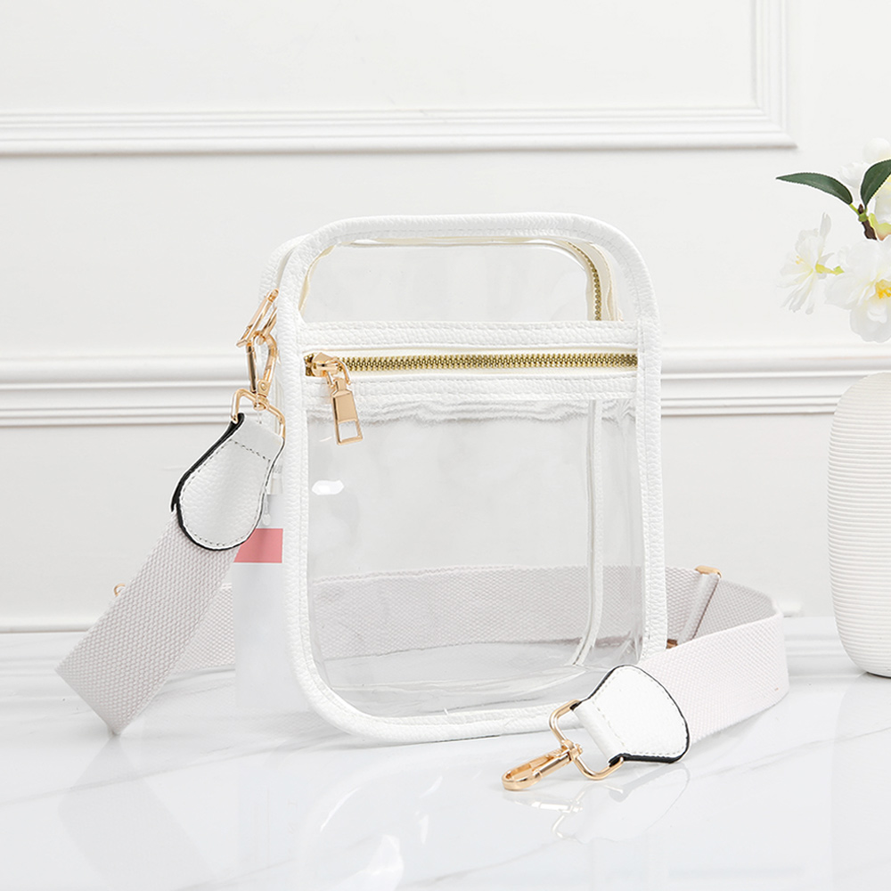 Solid Faux Leather Transparent Rectangle Crossbody Bag