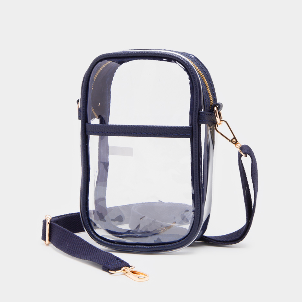 Solid Faux Leather Transparent Rectangle Crossbody Bag