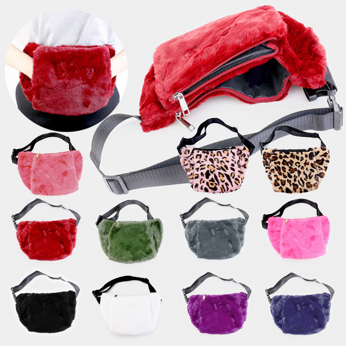 Solid Fluffy Faux Fur Fanny Pack / Hand Warmer