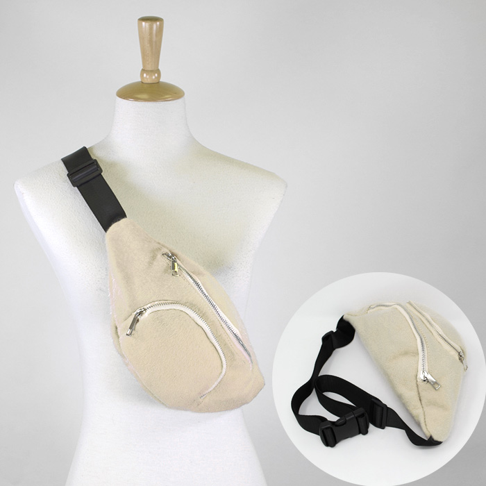 Solid Fluffy Faux Fur Sling Backpack / Fanny Pack