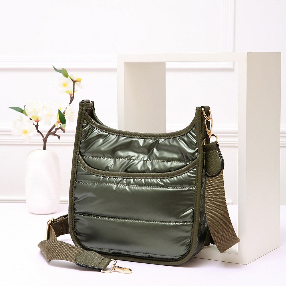 Solid Quilted Shiny Puffer Mini Crossbody Bag