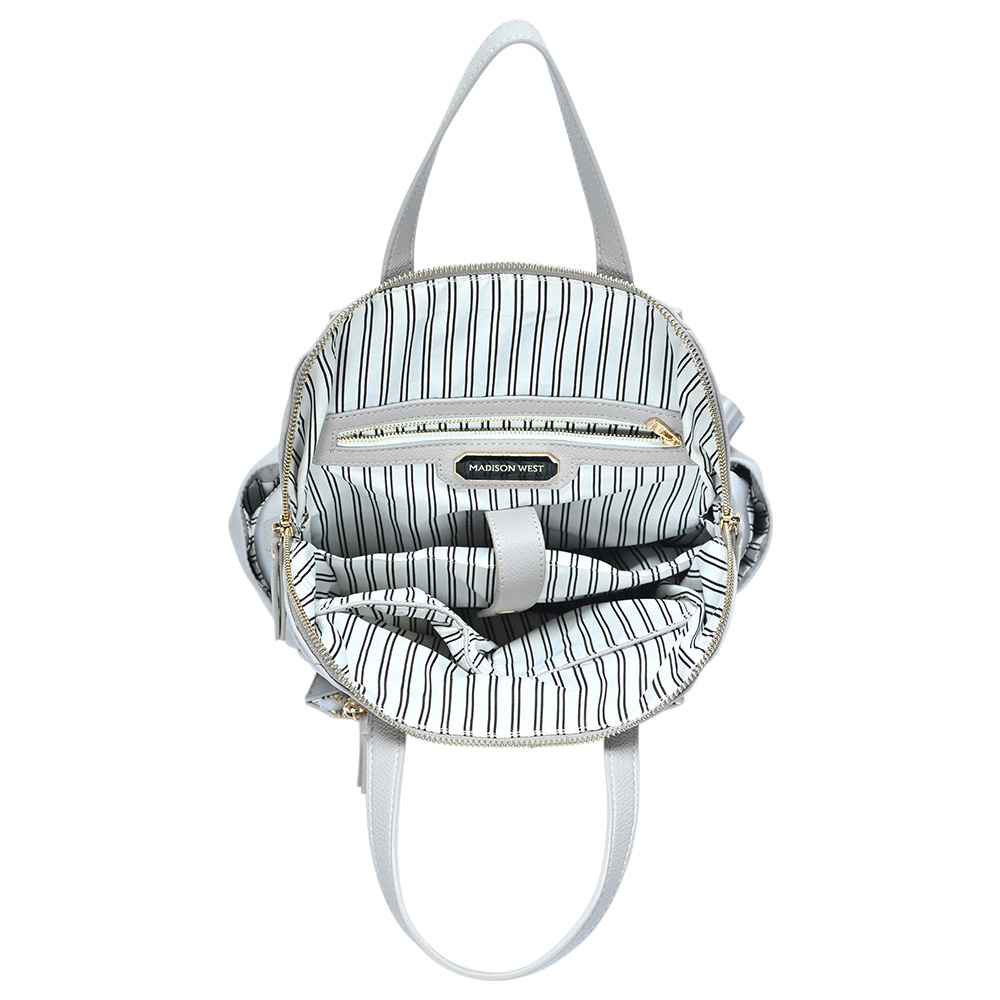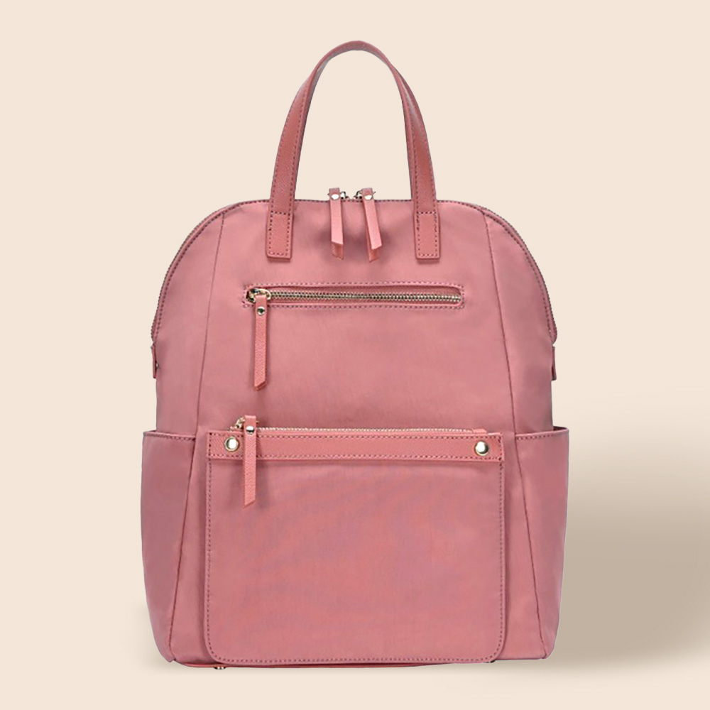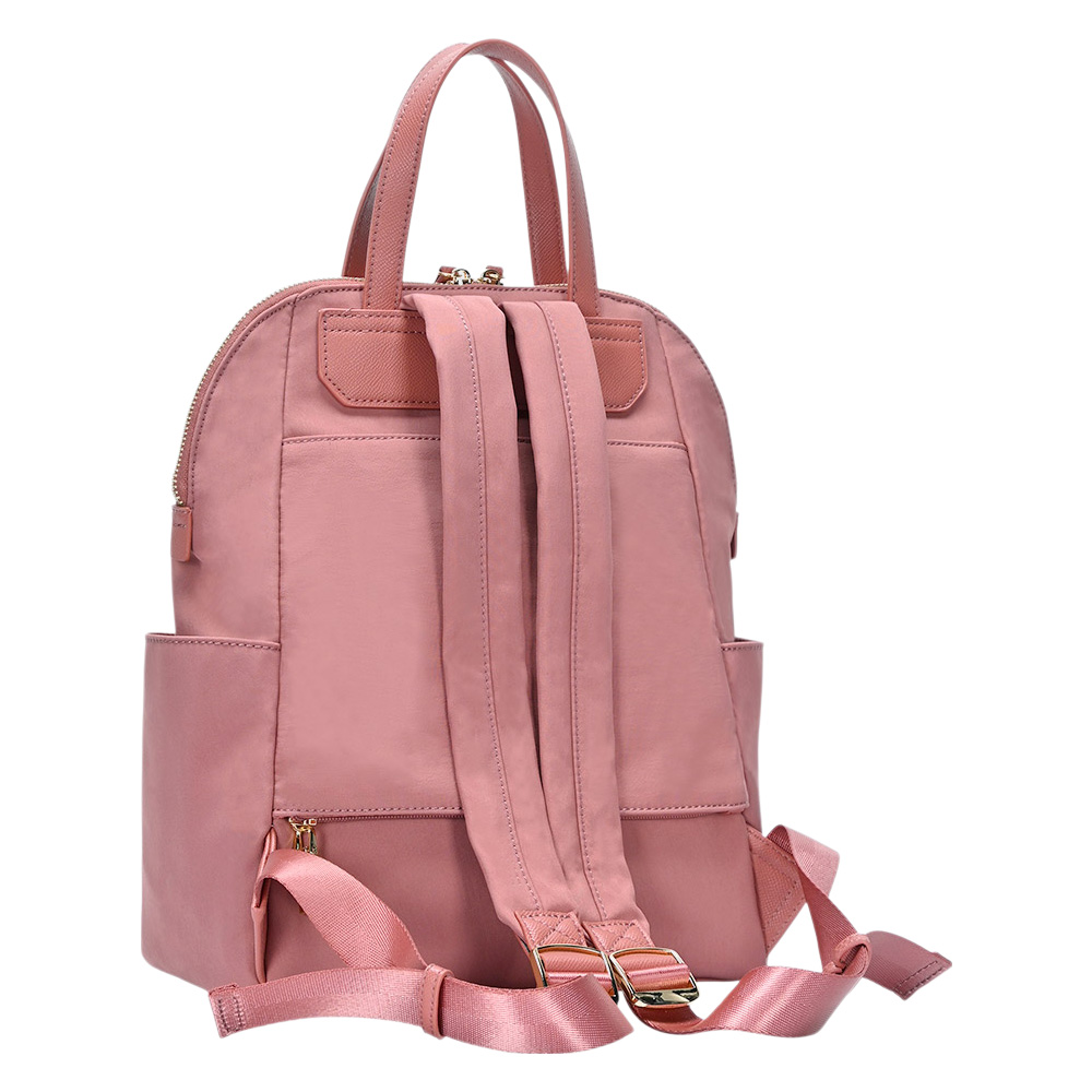 Details • Bag Size : 13" X 5" X 14.5" • Strap Size : Adjustable • Shell : PU, Nylon • Lining : 100% Polyester • One Inside Laptop Pocket • One Inside Zipper Pocket • Two Inside Slip Pockets • Two Front Zipper Pockets • Two Bottle Pockets • Zipper Closure • Versatile nylon backpack with front zip pockets, padded interior, and adjustable straps. Ideal for everyday use, travel, or work. Durable, lightweight, and fashion-forward design.