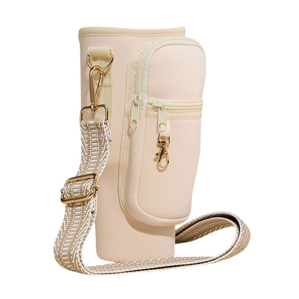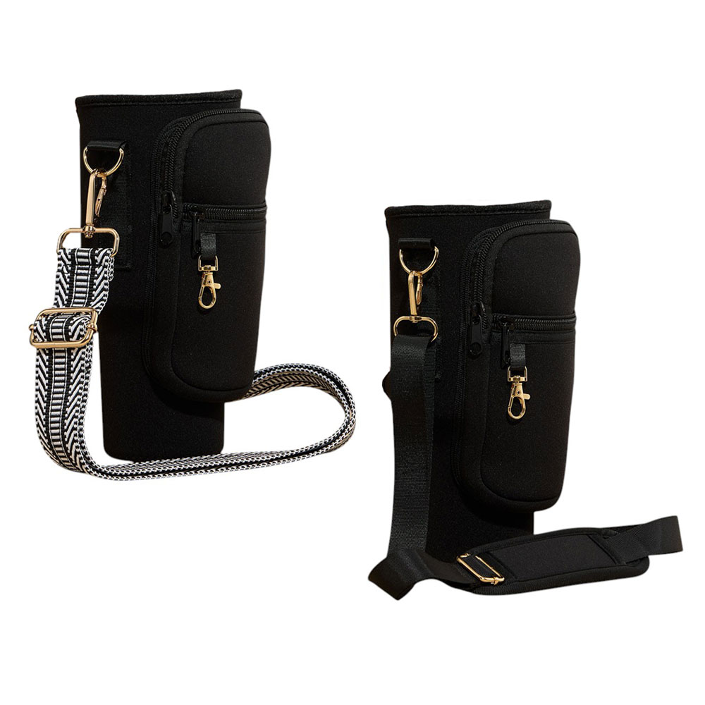 Solid Tumbler Carrier Holder Chevron Pattern Strap Crossbody Bag