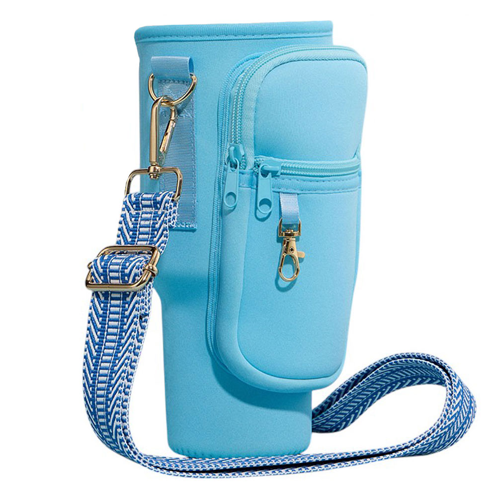 Solid Tumbler Carrier Holder Chevron Pattern Strap Crossbody Bag